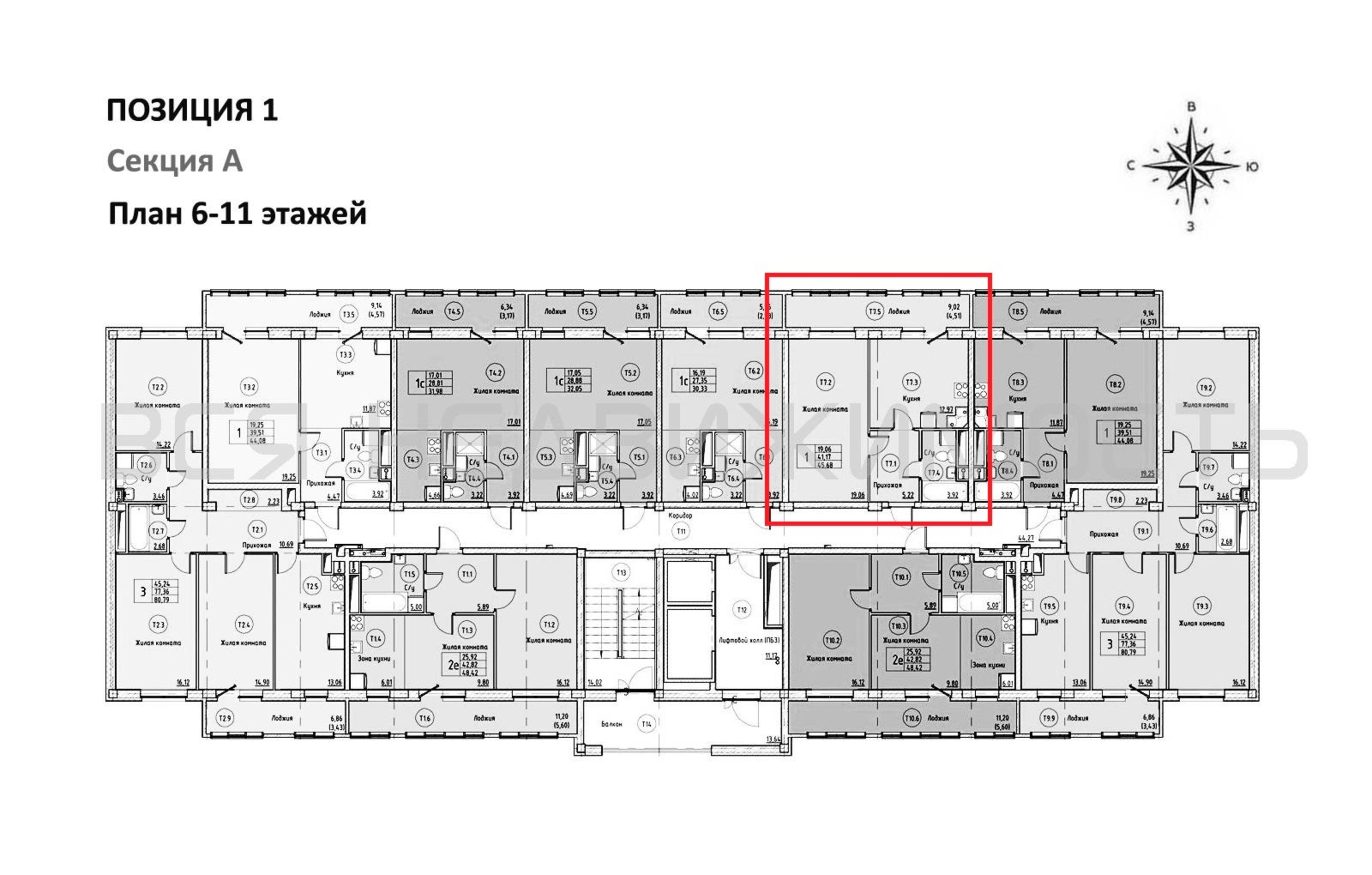 1-комнатная квартира, 45.68 м² 6/16 этаж ID объекта 100138646