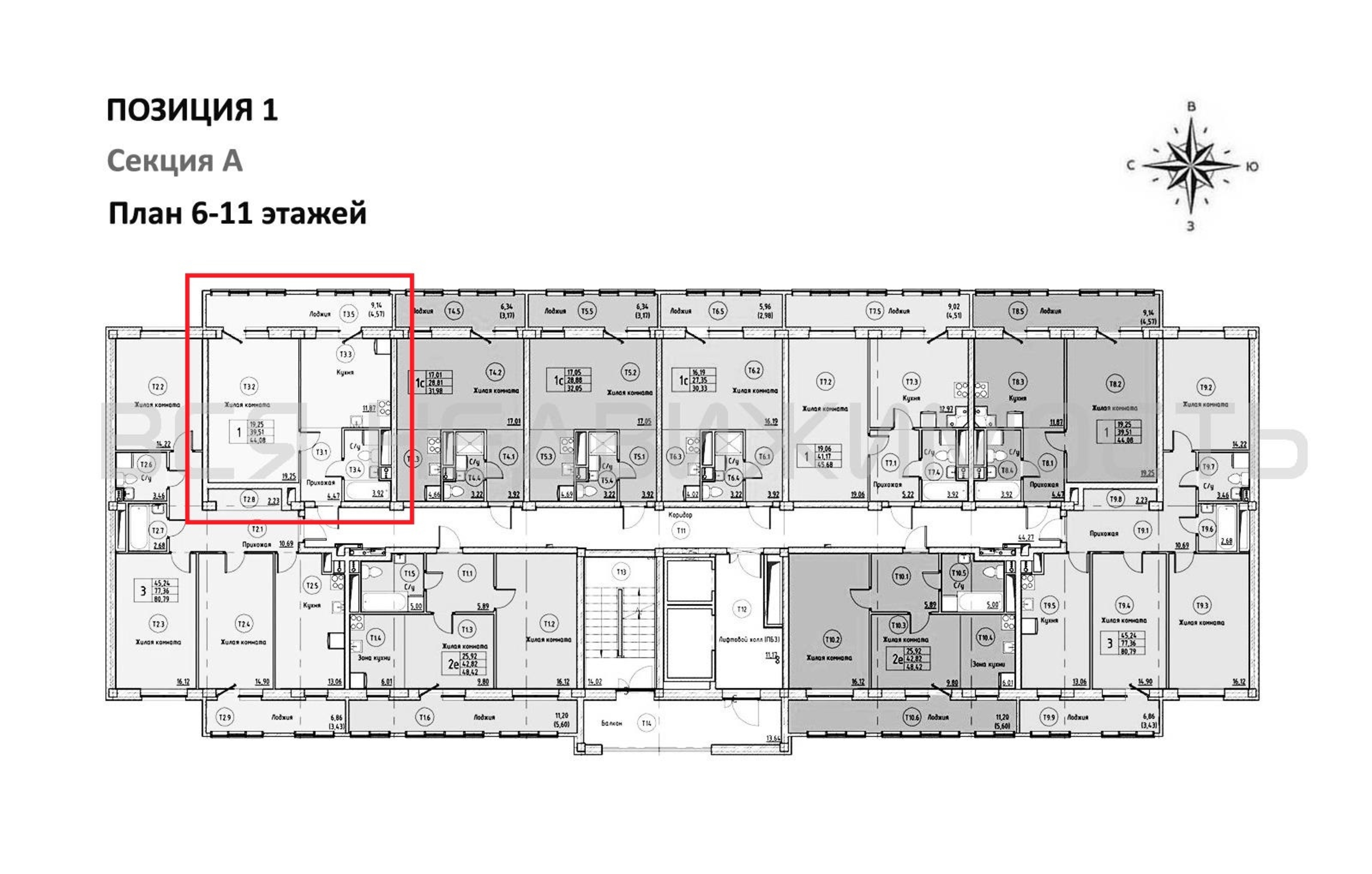 1-комнатная квартира, 44.08 м² 6/16 этаж ID объекта 100138652