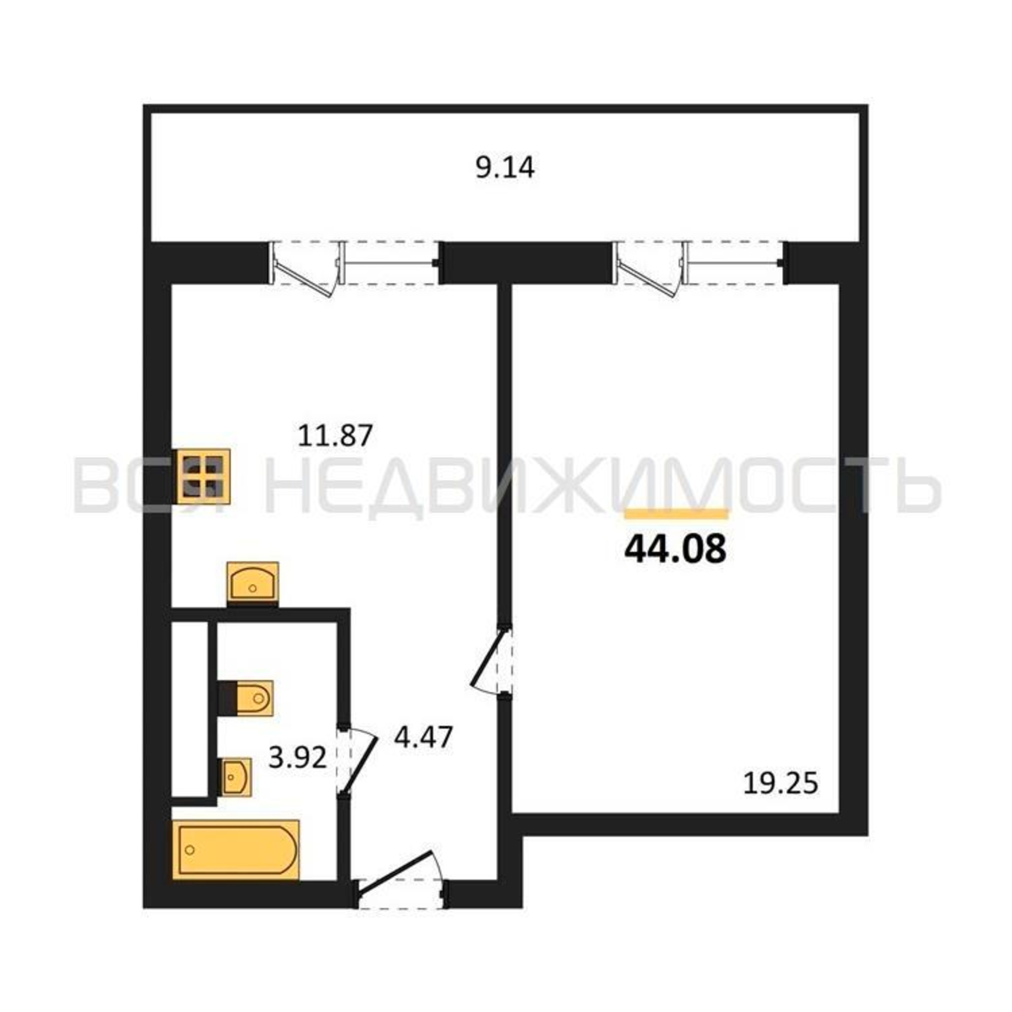 1-комнатная квартира, 44.08 м² 10/16 этаж ID объекта 100138660