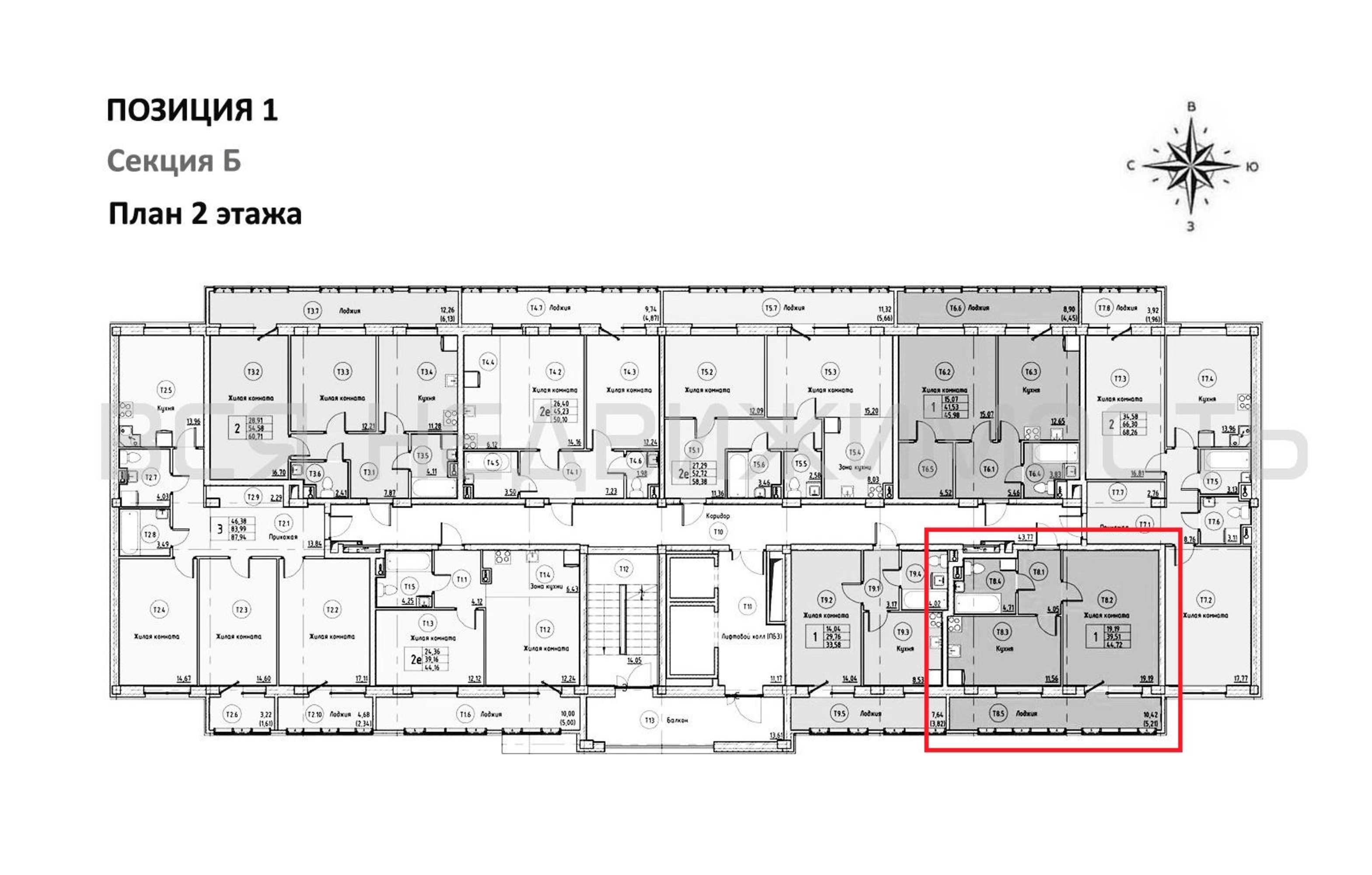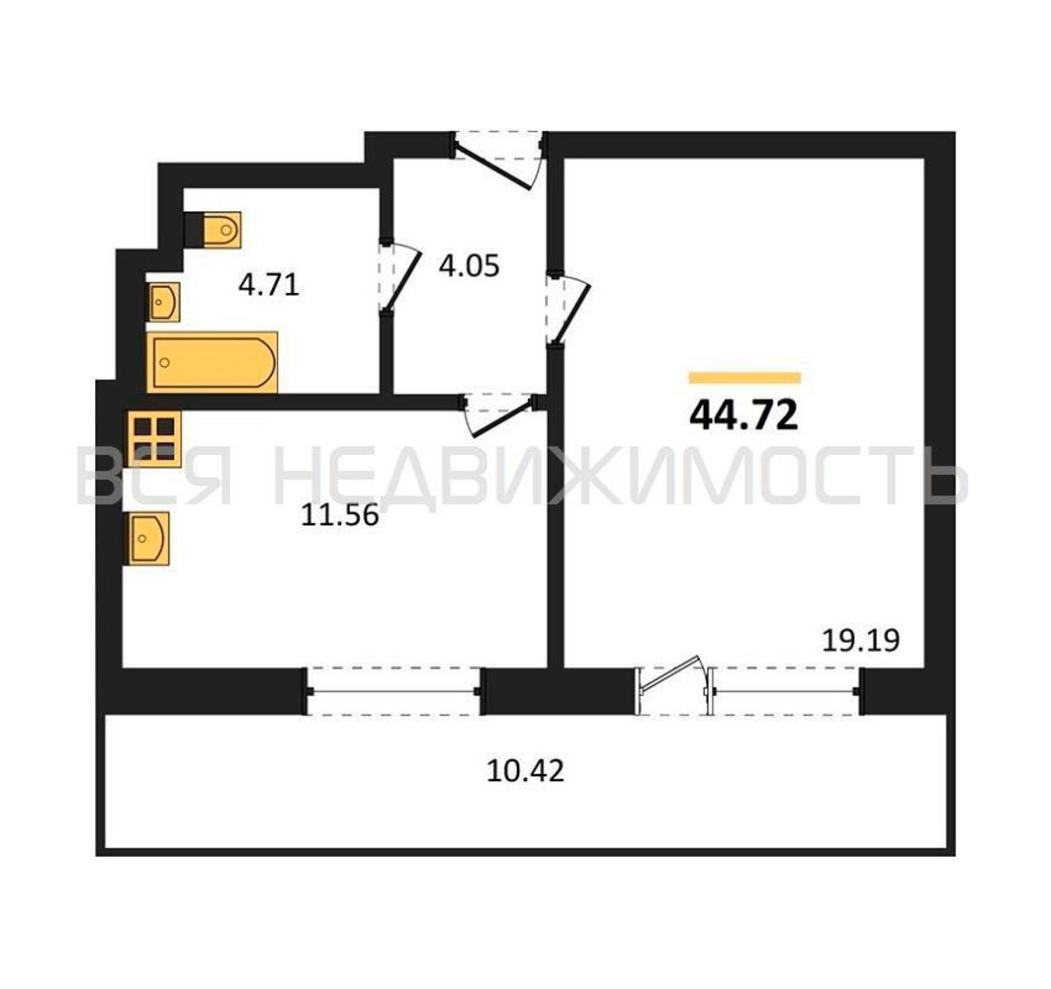 1-комнатная квартира, 44.72 м² 2/16 этаж ID объекта 100138670