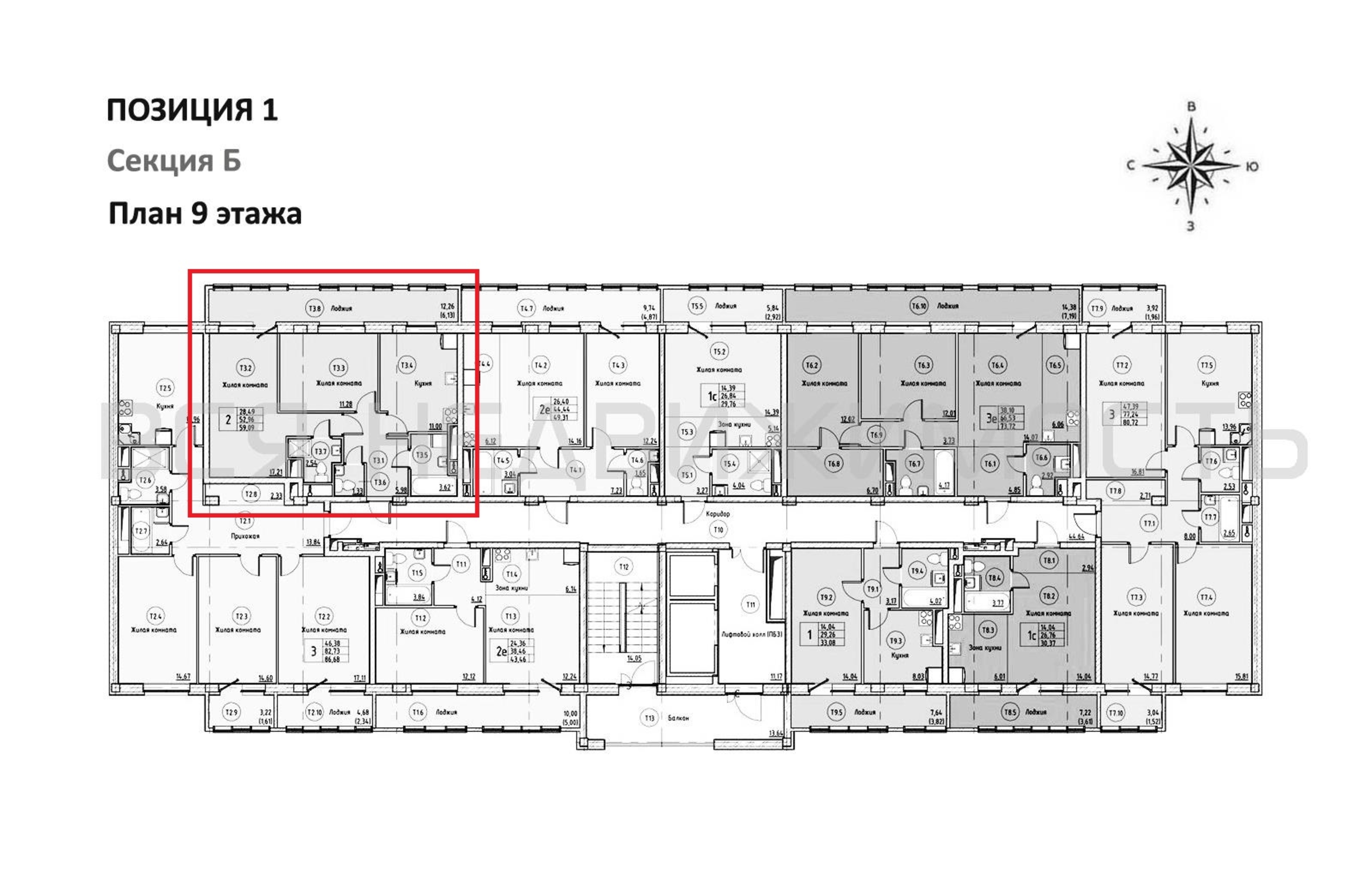 2-комнатная квартира, 59.09 м² 9/16 этаж ID объекта 100138673