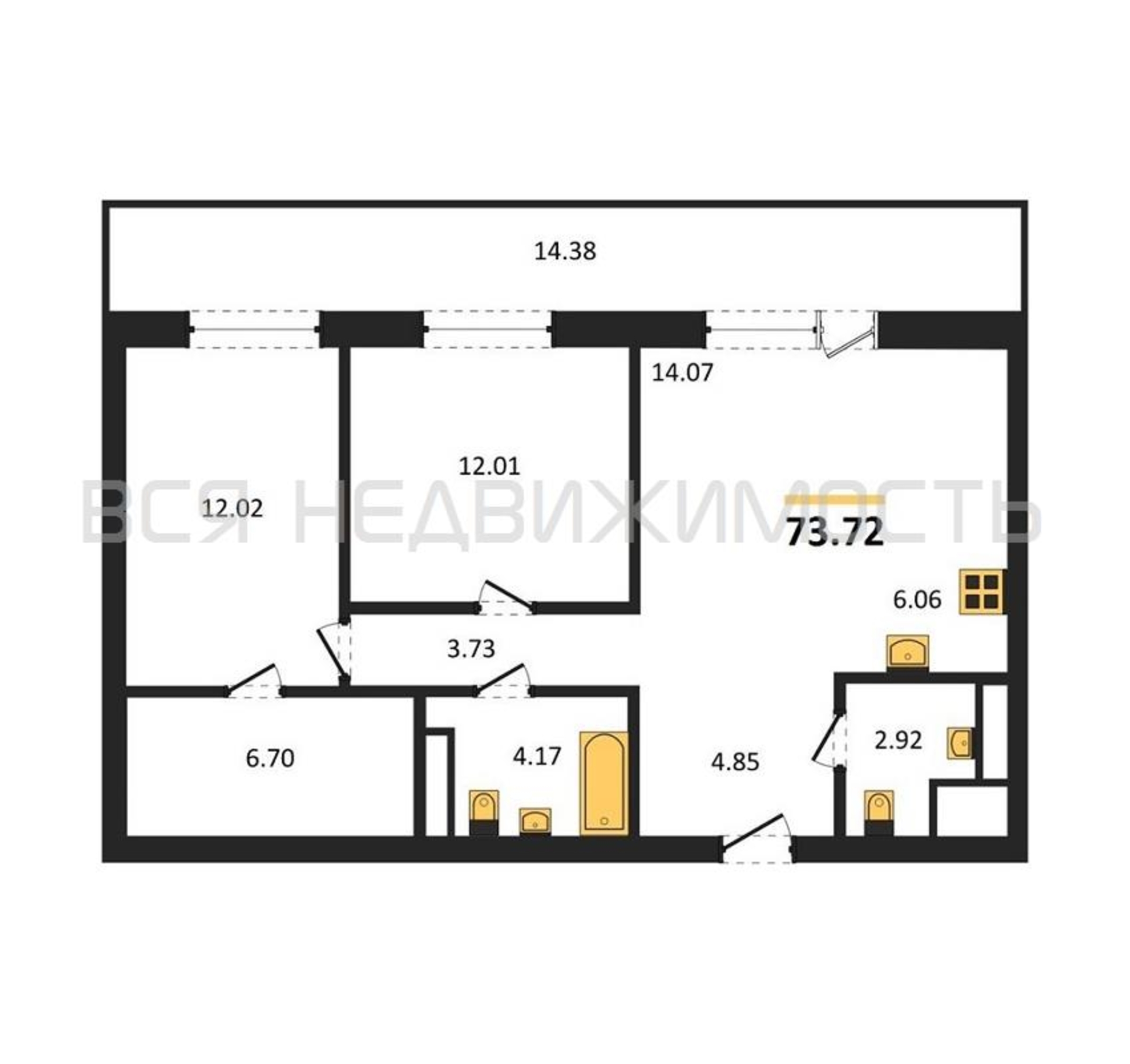 2-комнатная квартира, 73.72 м² 10/16 этаж ID объекта 100138678