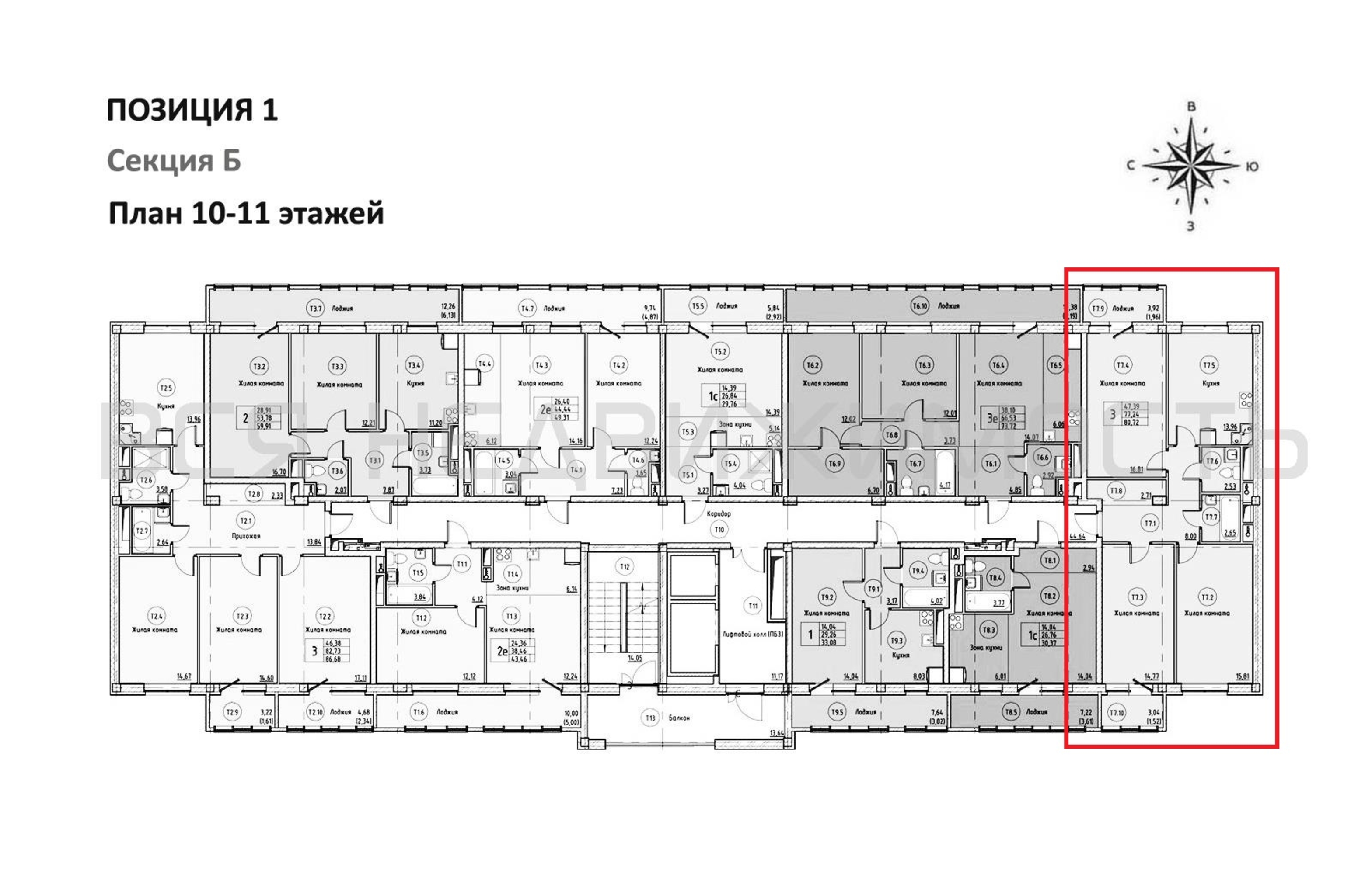 3-комнатная квартира, 80.72 м² 10/16 этаж ID объекта 100138679