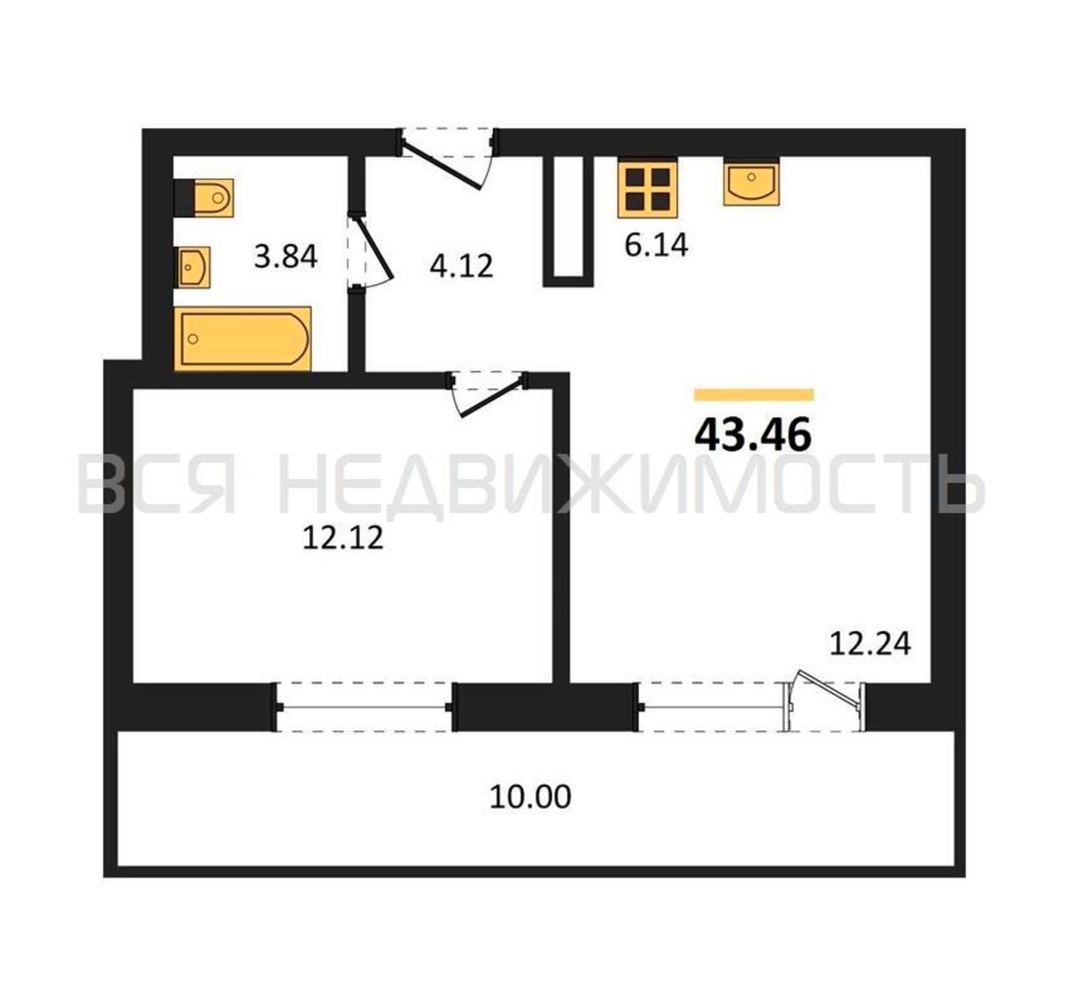 1-комнатная квартира, 43.46 м² 6/16 этаж ID объекта 100138696