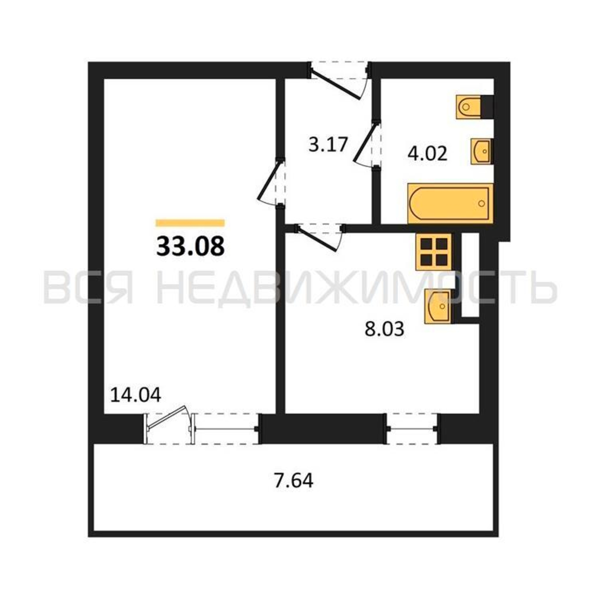 Строительная площадь33.08 м²