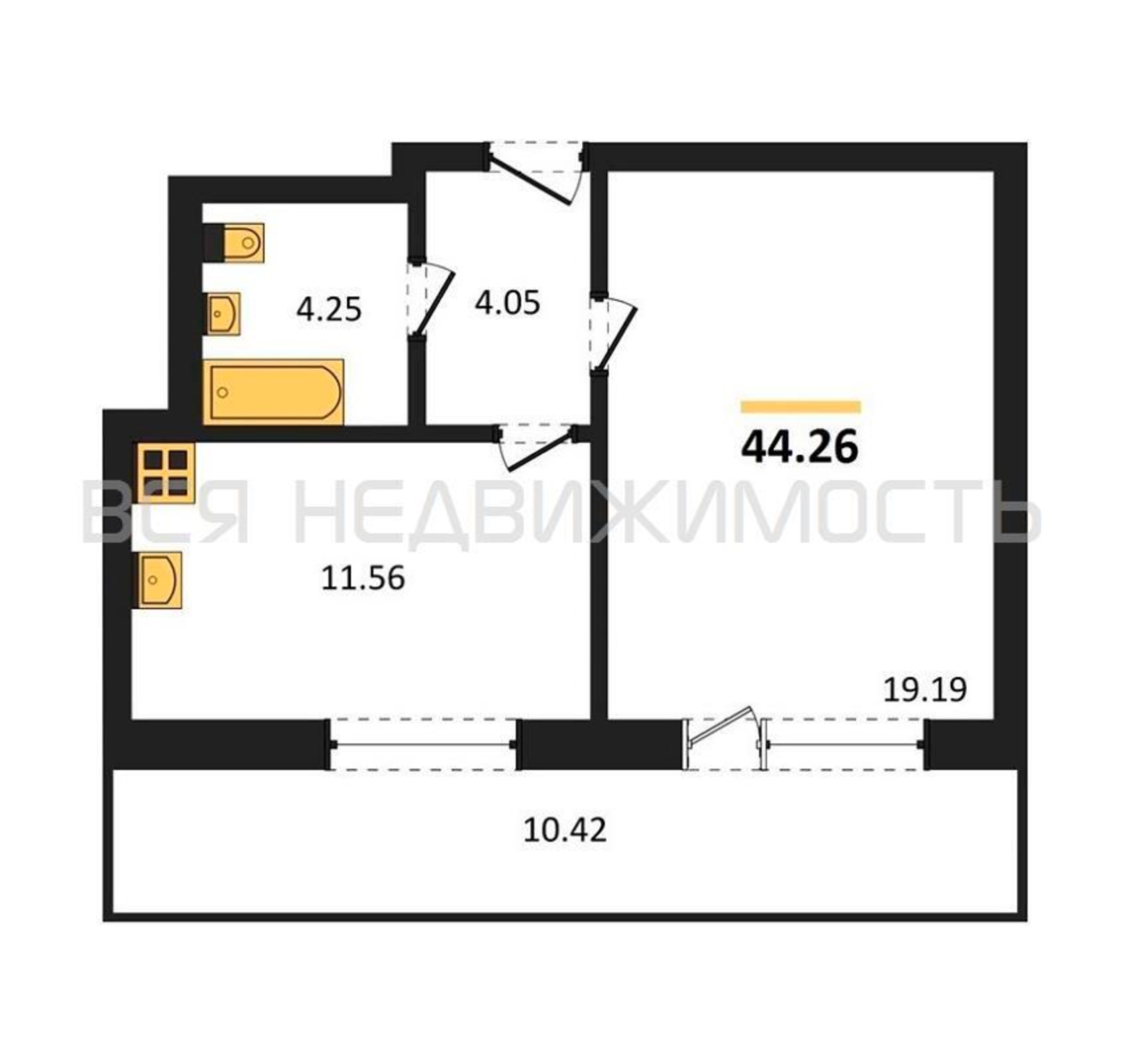 1-комнатная квартира, 44.26 м² 8/16 этаж ID объекта 100138703