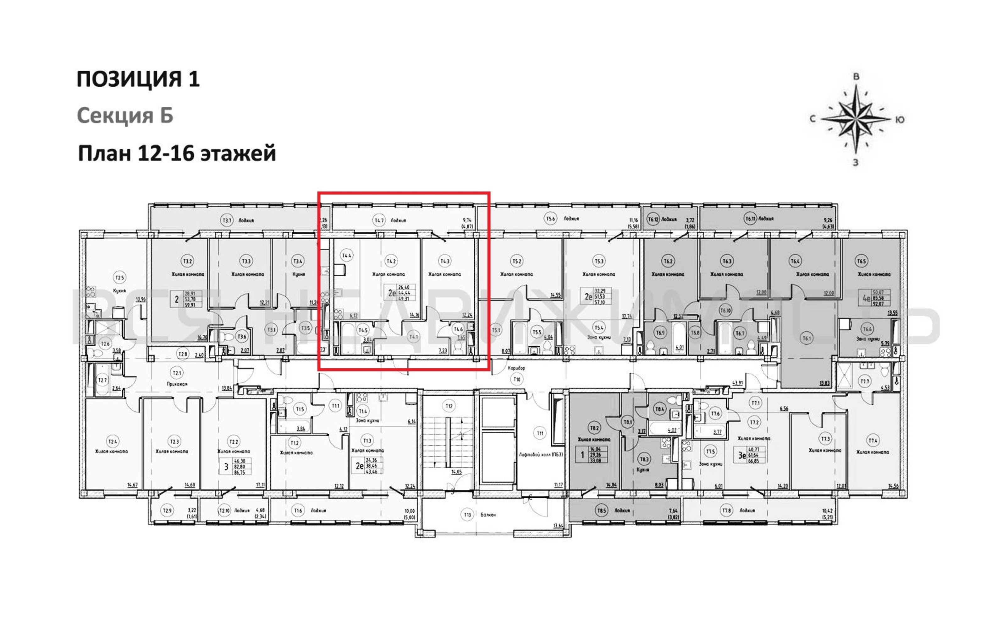 1-комнатная квартира, 49.31 м² 14/16 этаж ID объекта 100138711