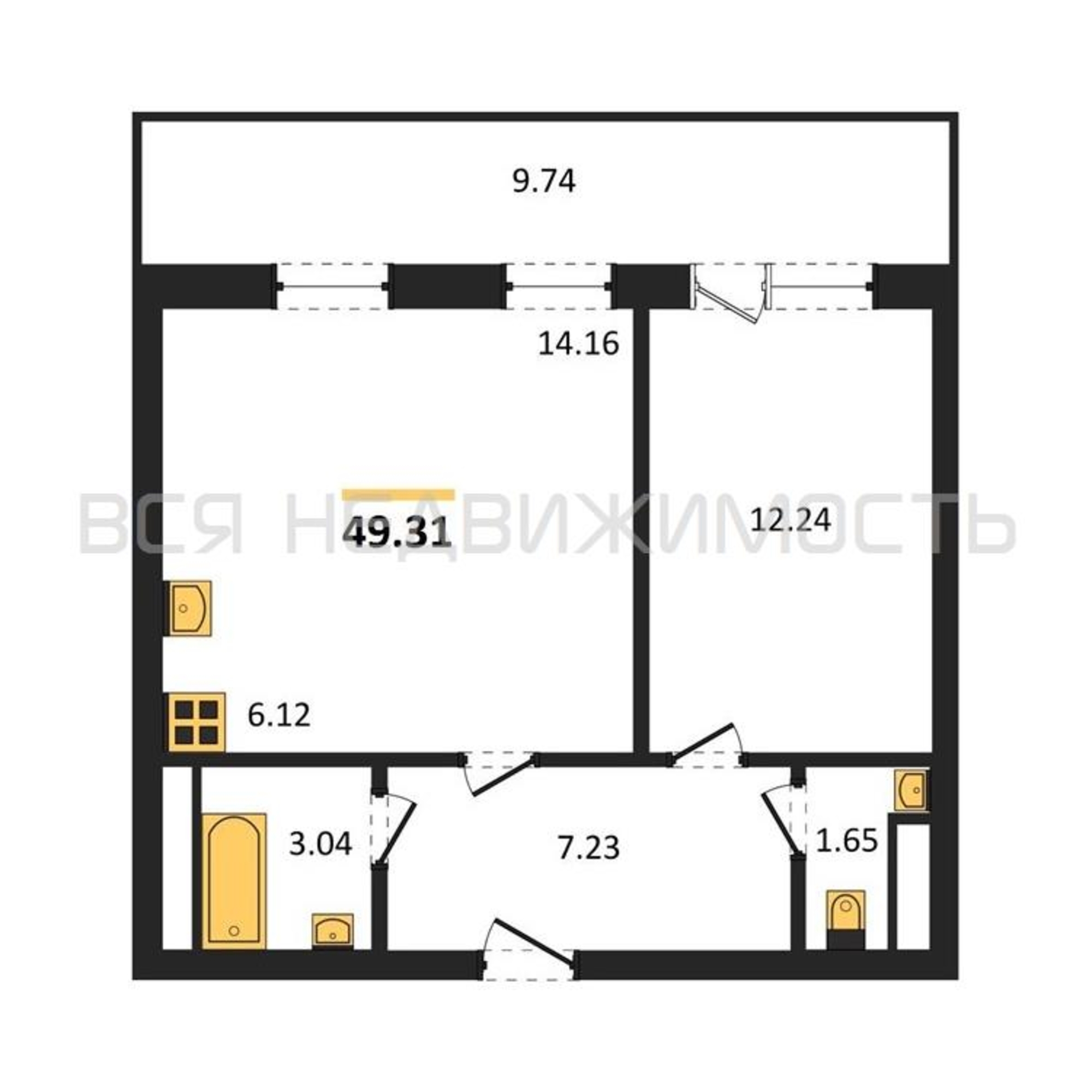 1-комнатная квартира, 49.31 м² 16/16 этаж ID объекта 100138712