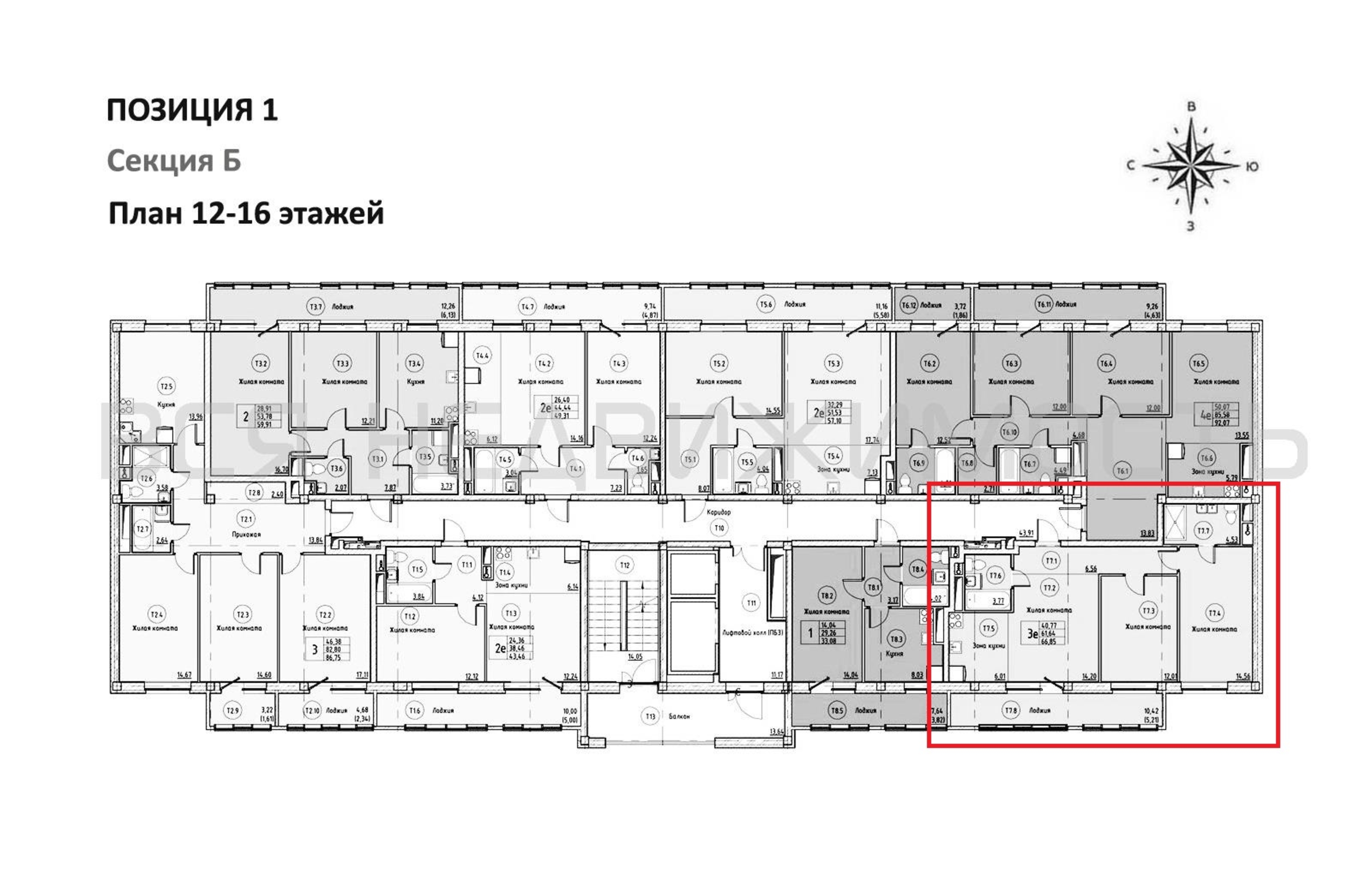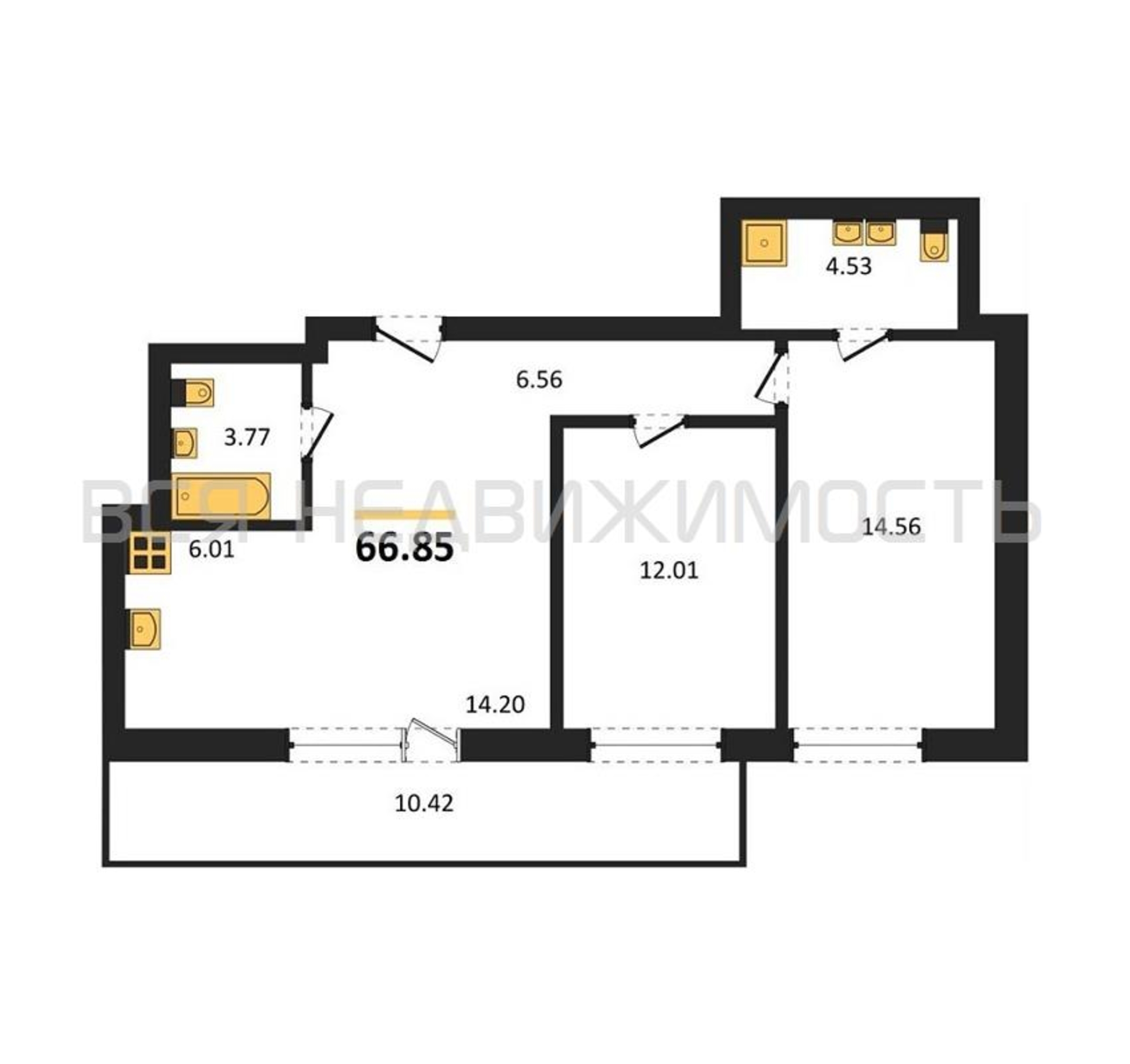 2-комнатная квартира, 66.85 м² 14/16 этаж ID объекта 100138720