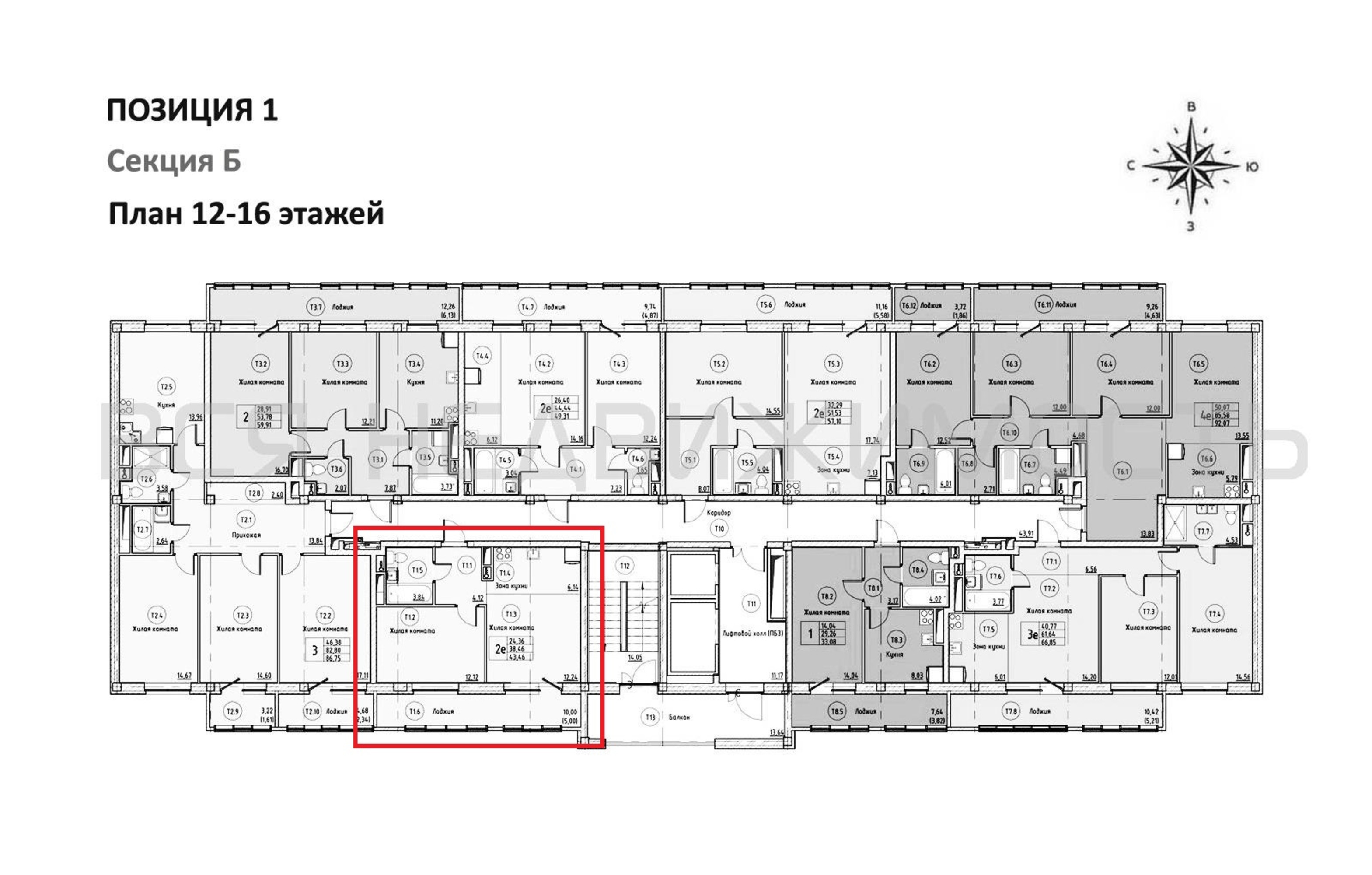 1-комнатная квартира, 43.46 м² 14/16 этаж ID объекта 100138726