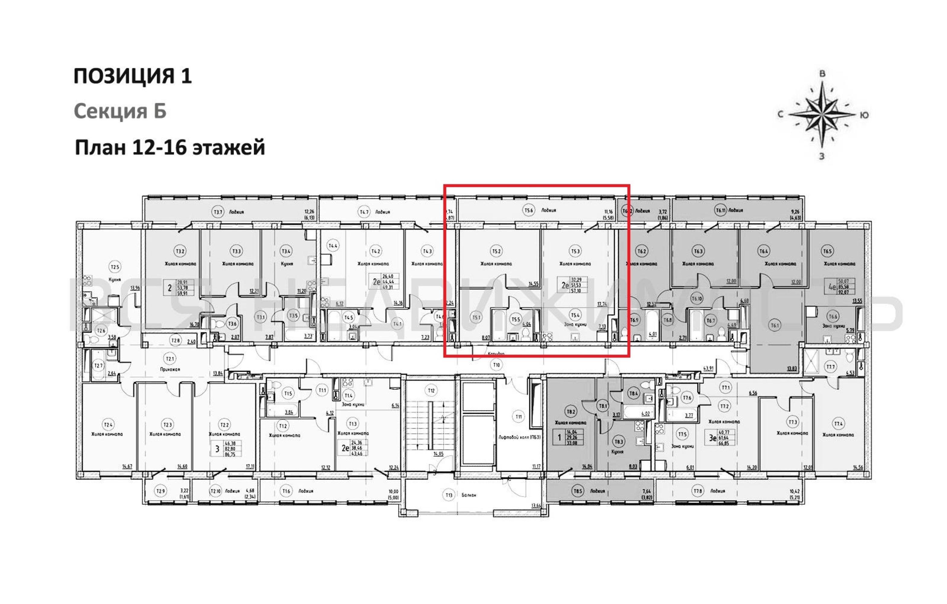 1-комнатная квартира, 57.11 м² 14/16 этаж ID объекта 100138729