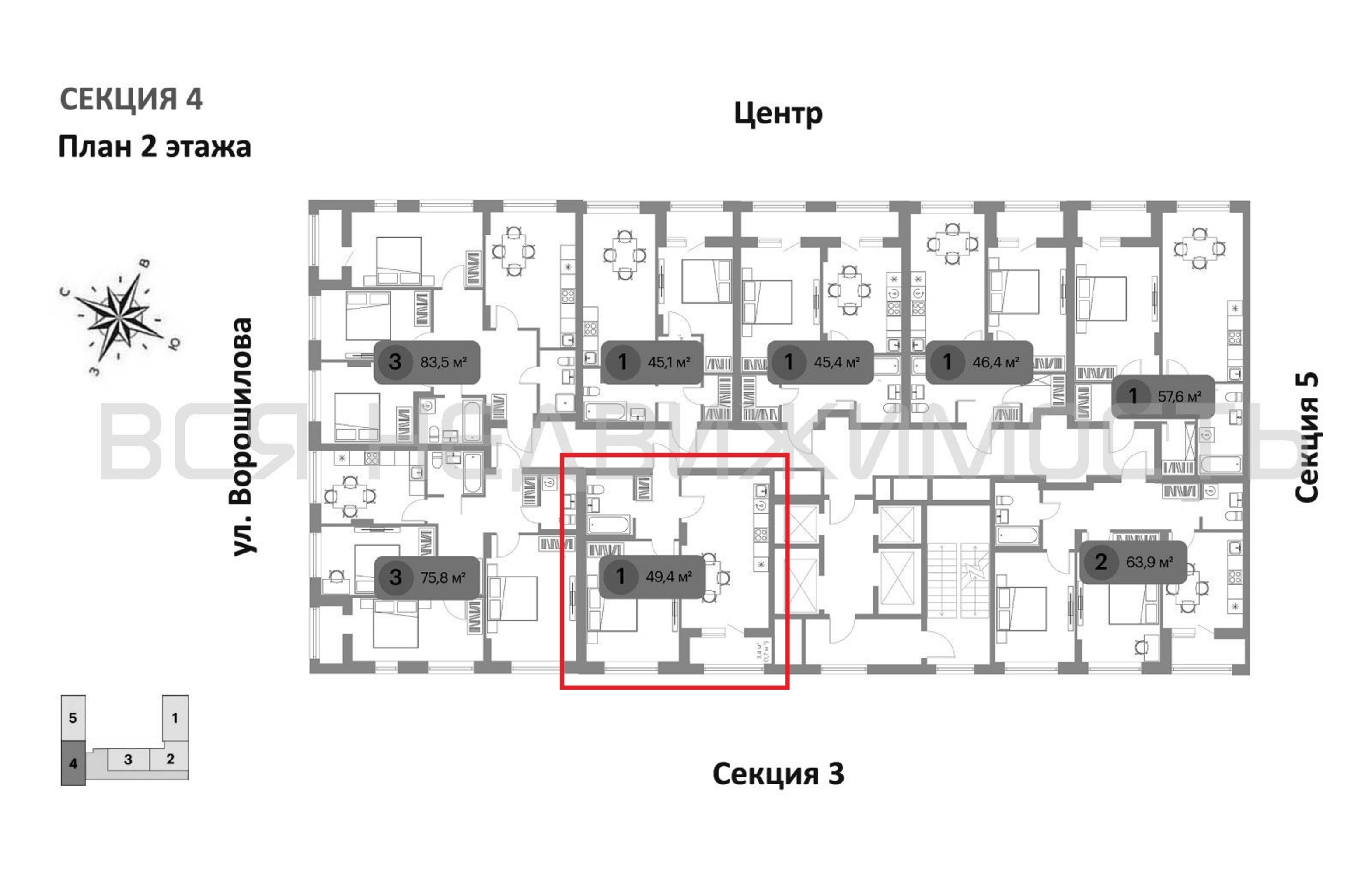 1-комнатная квартира, 49.50 м² 2/23 этаж ID объекта 100139163