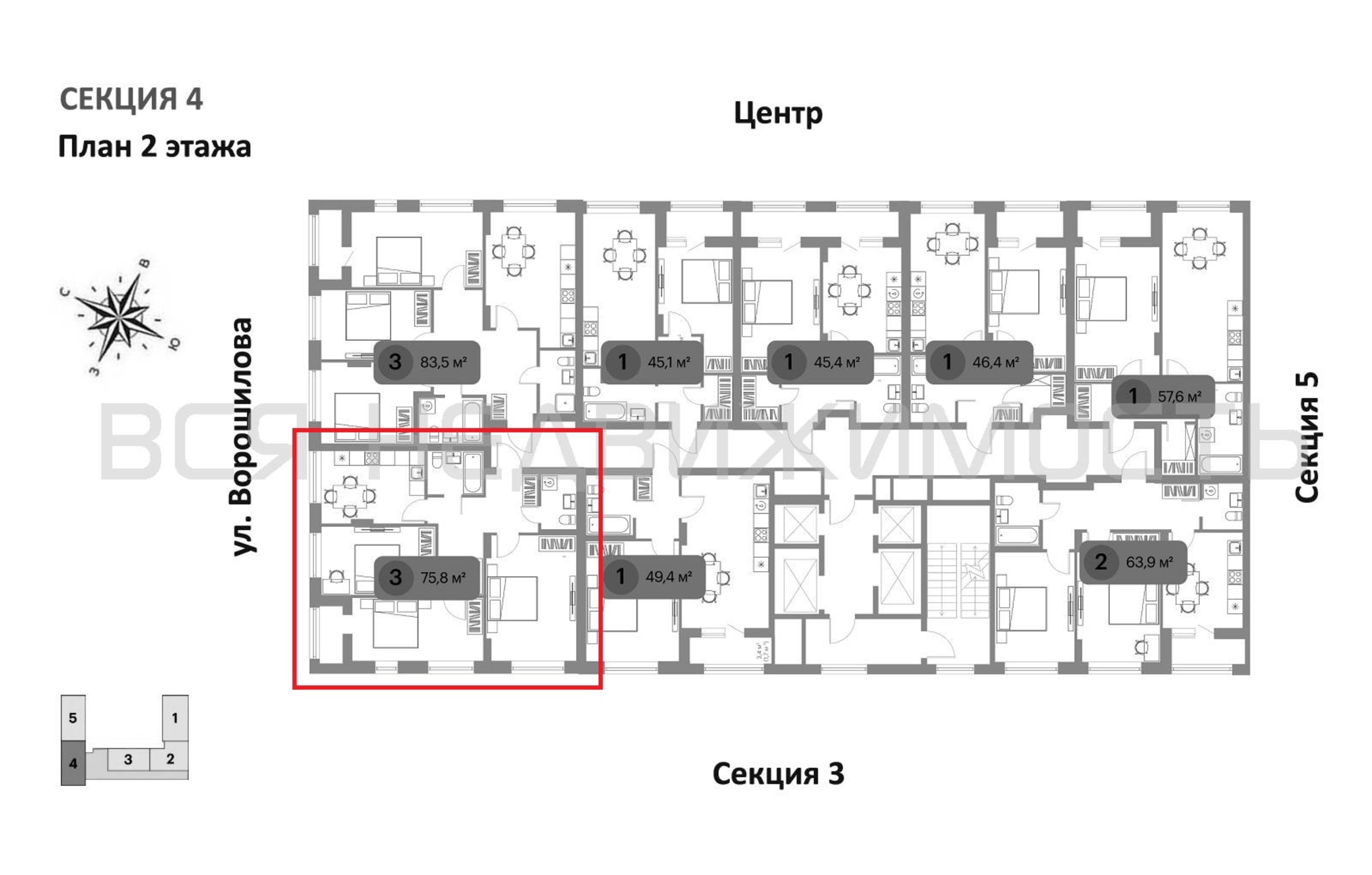 3-комнатная квартира, 75.80 м² 2/23 этаж ID объекта 100139164