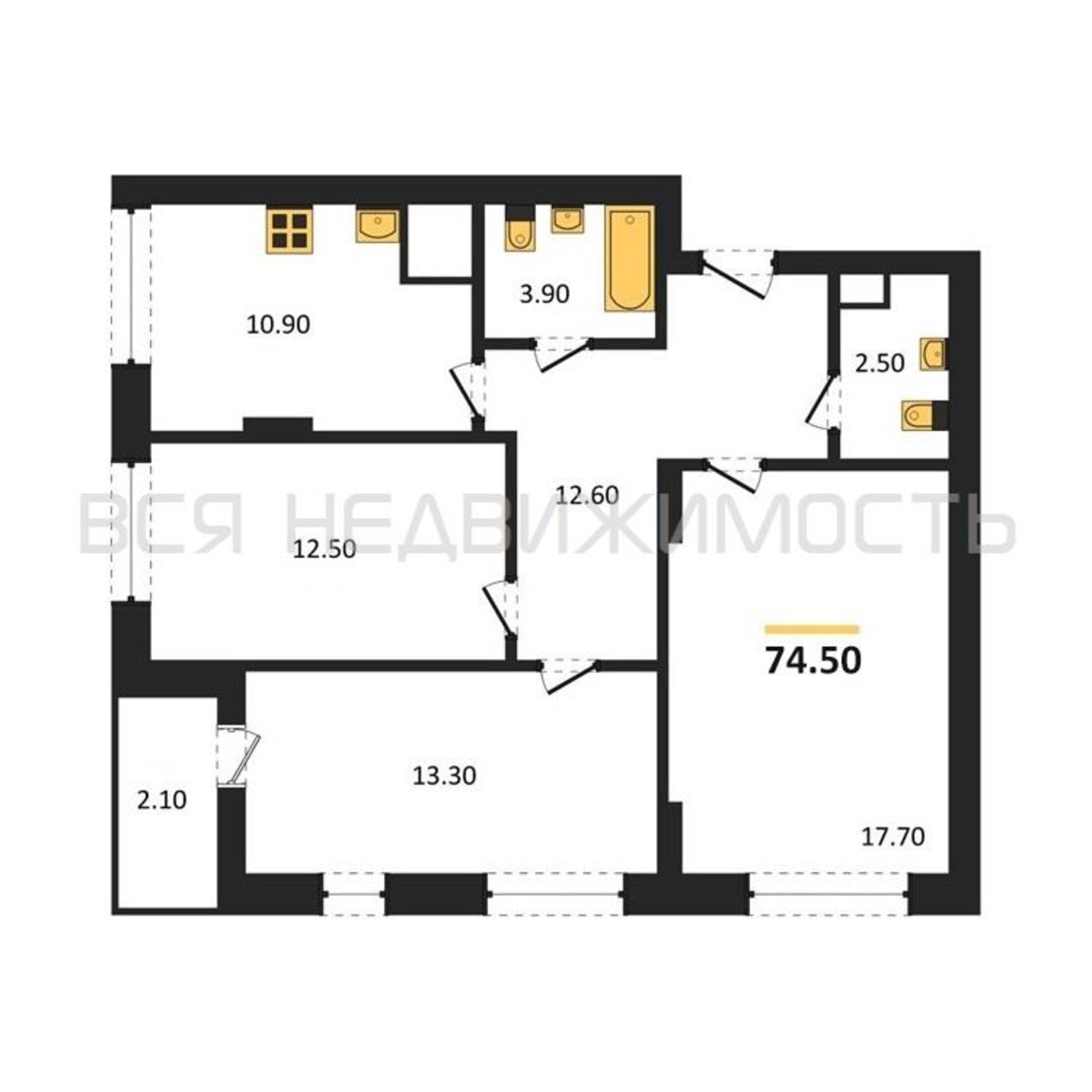 3-комнатная квартира, 74.50 м² 4/23 этаж ID объекта 100139180