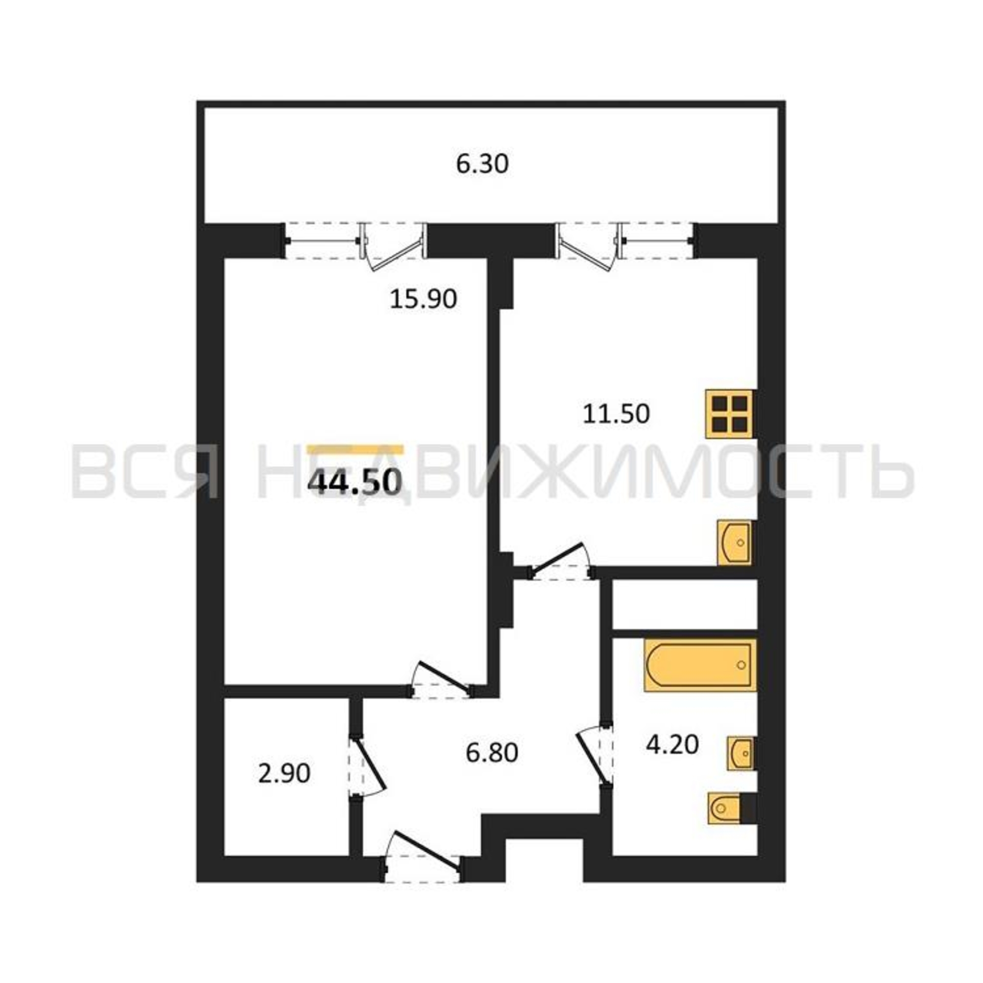 Строительная площадь44.50 м²