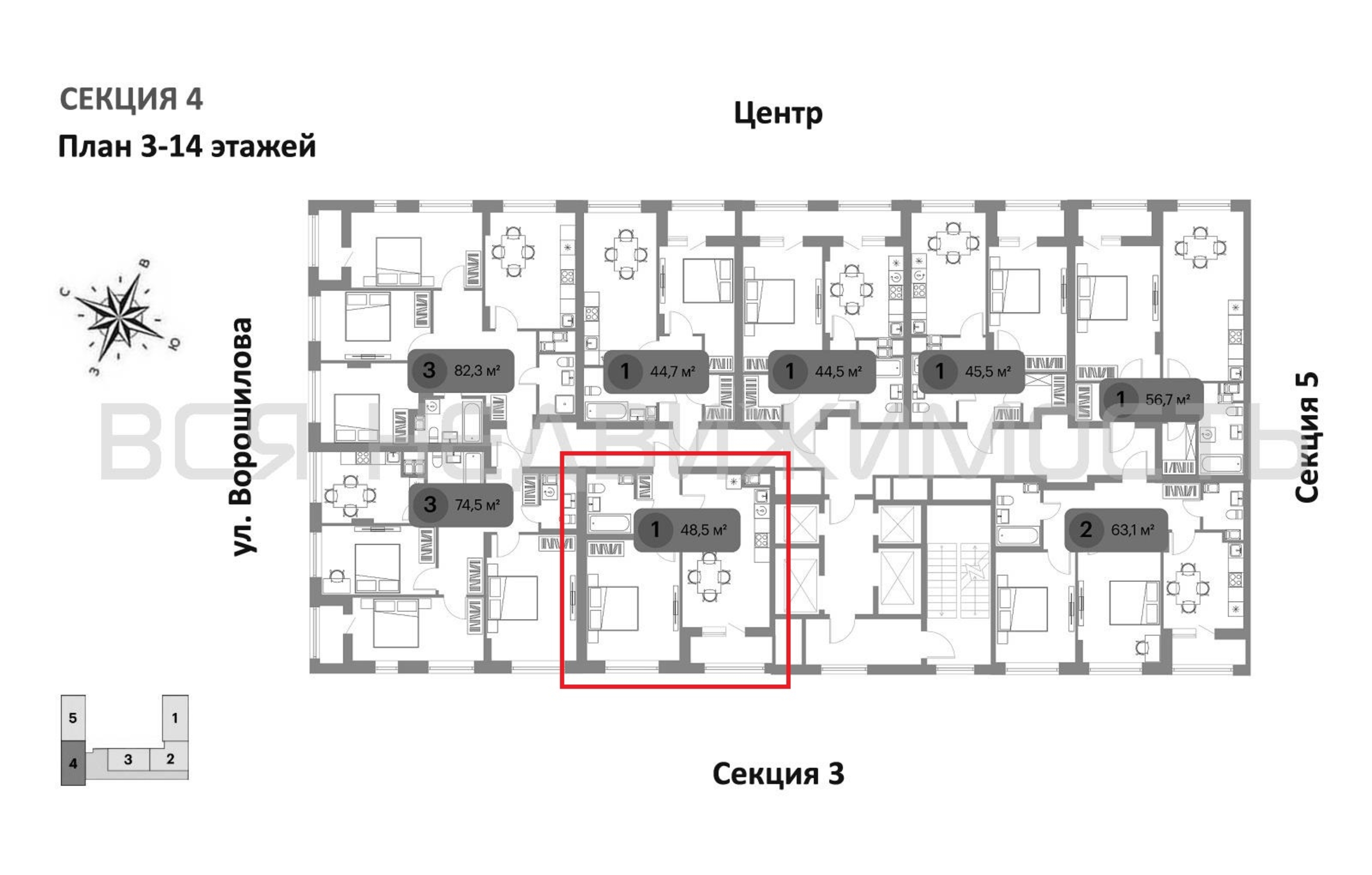 1-комнатная квартира, 49.00 м² 8/23 этаж ID объекта 100139211