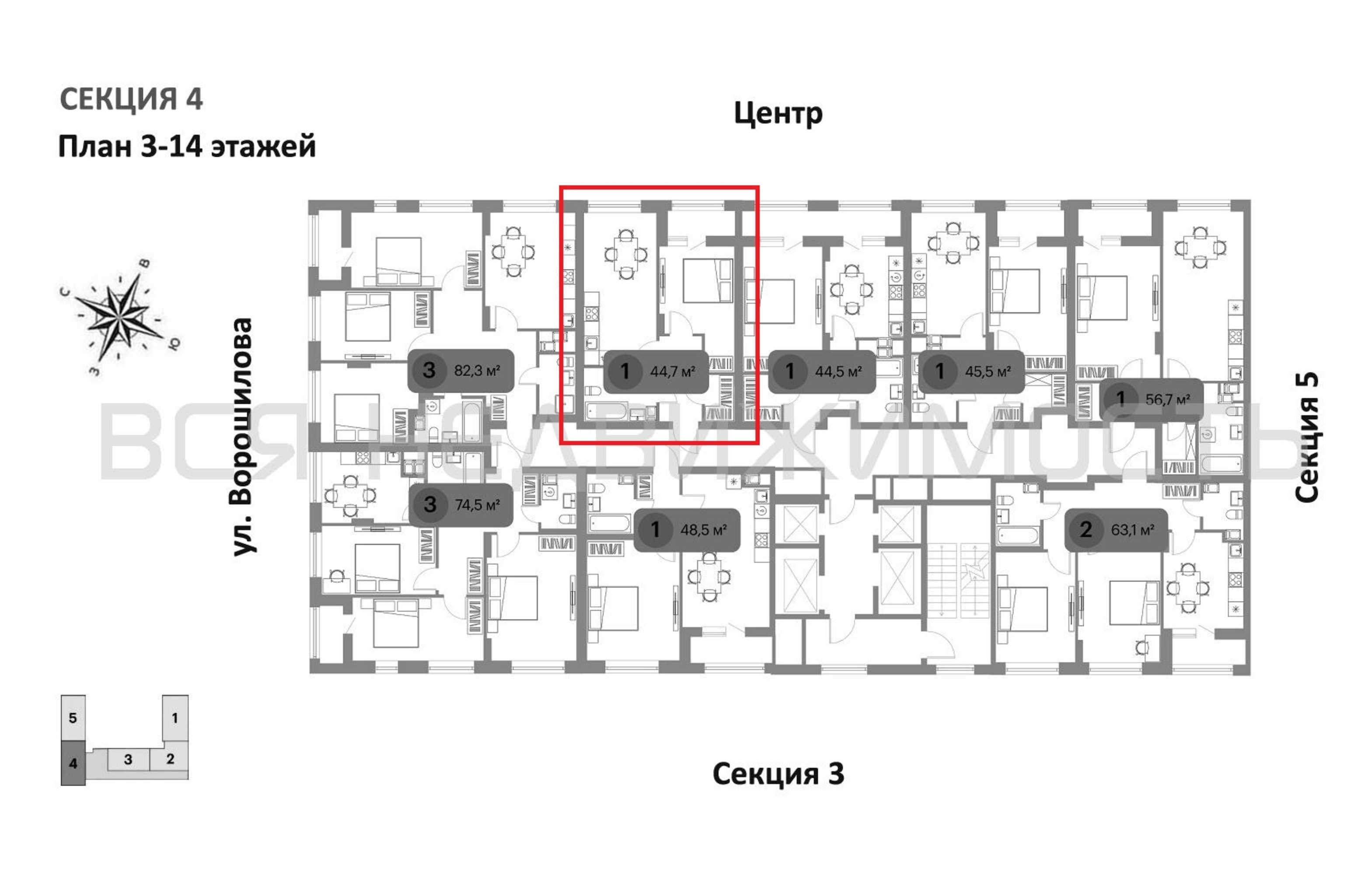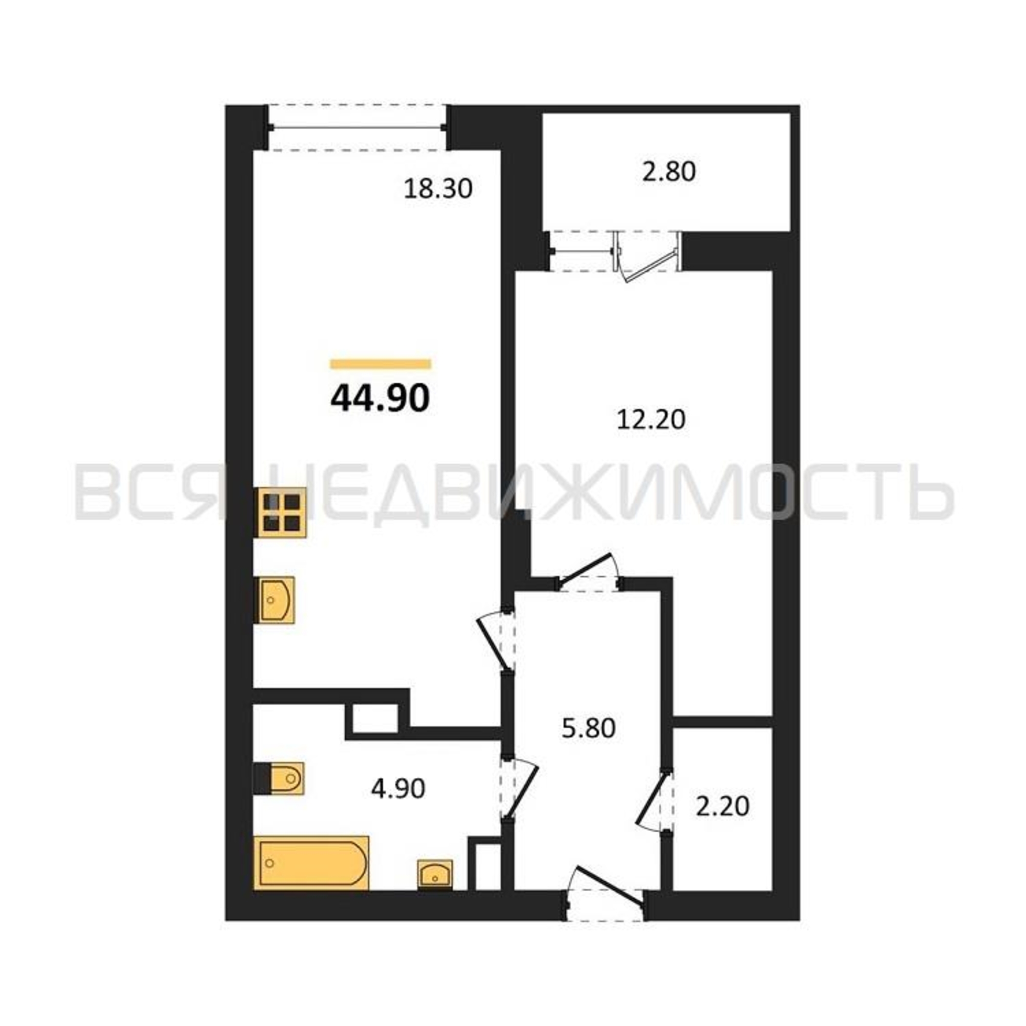 1-комнатная квартира, 44.90 м² 14/23 этаж ID объекта 100139262