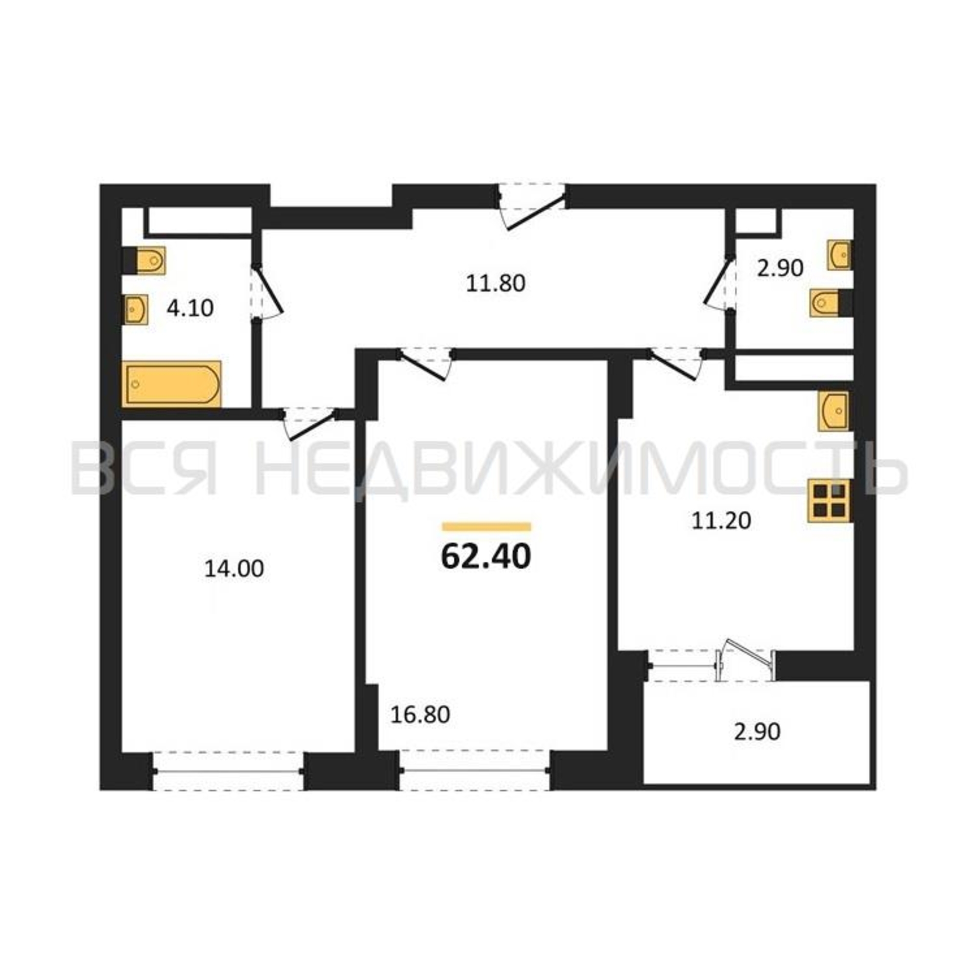 2-комнатная квартира, 62.40 м² 22/23 этаж ID объекта 100139330
