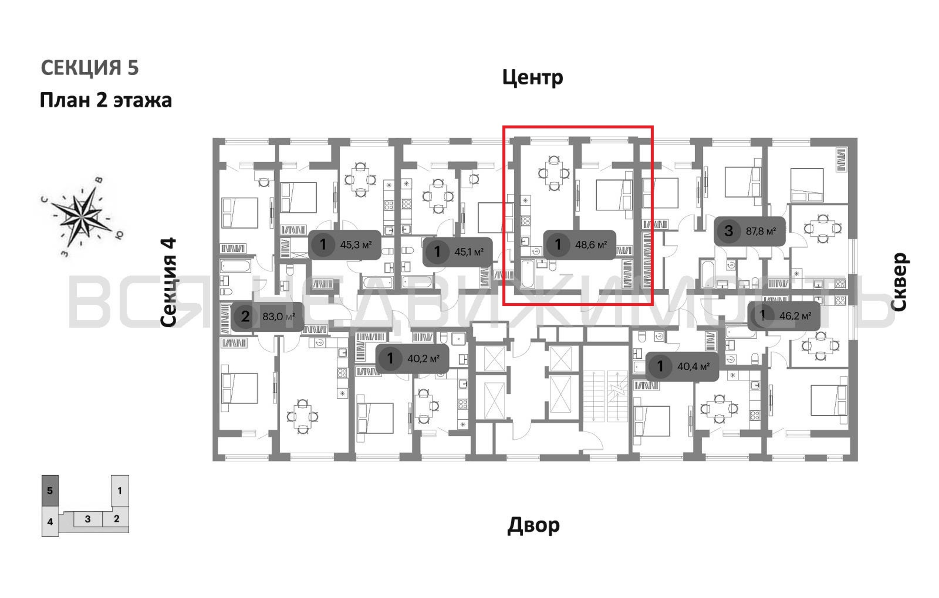 1-комнатная квартира, 48.70 м² 2/23 этаж ID объекта 100139343