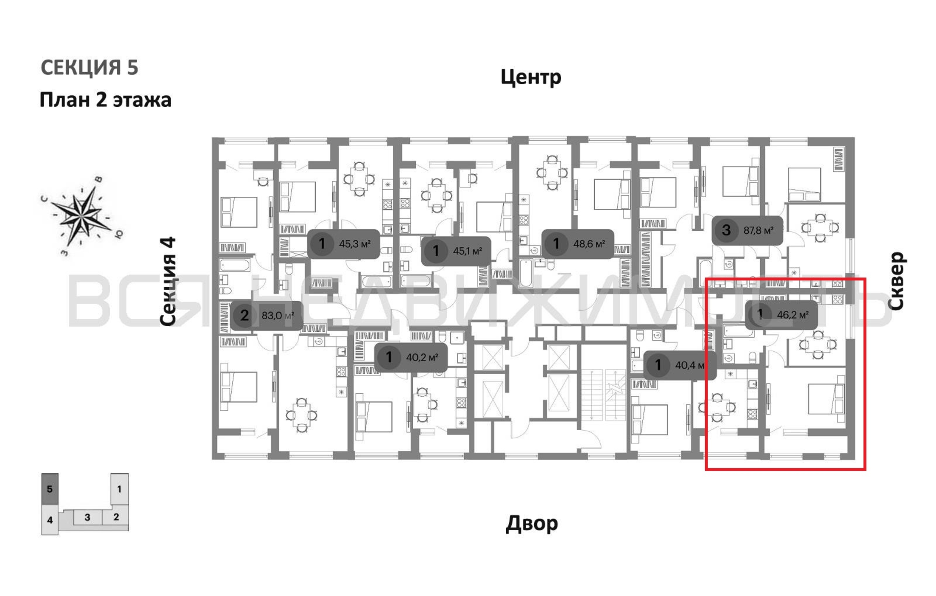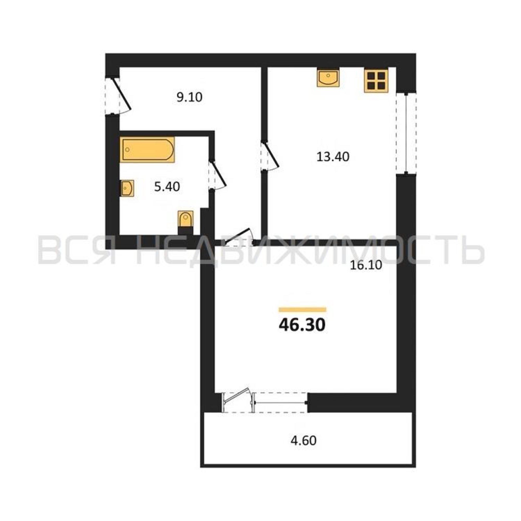 1-комнатная квартира, 46.30 м² 2/23 этаж ID объекта 100139345
