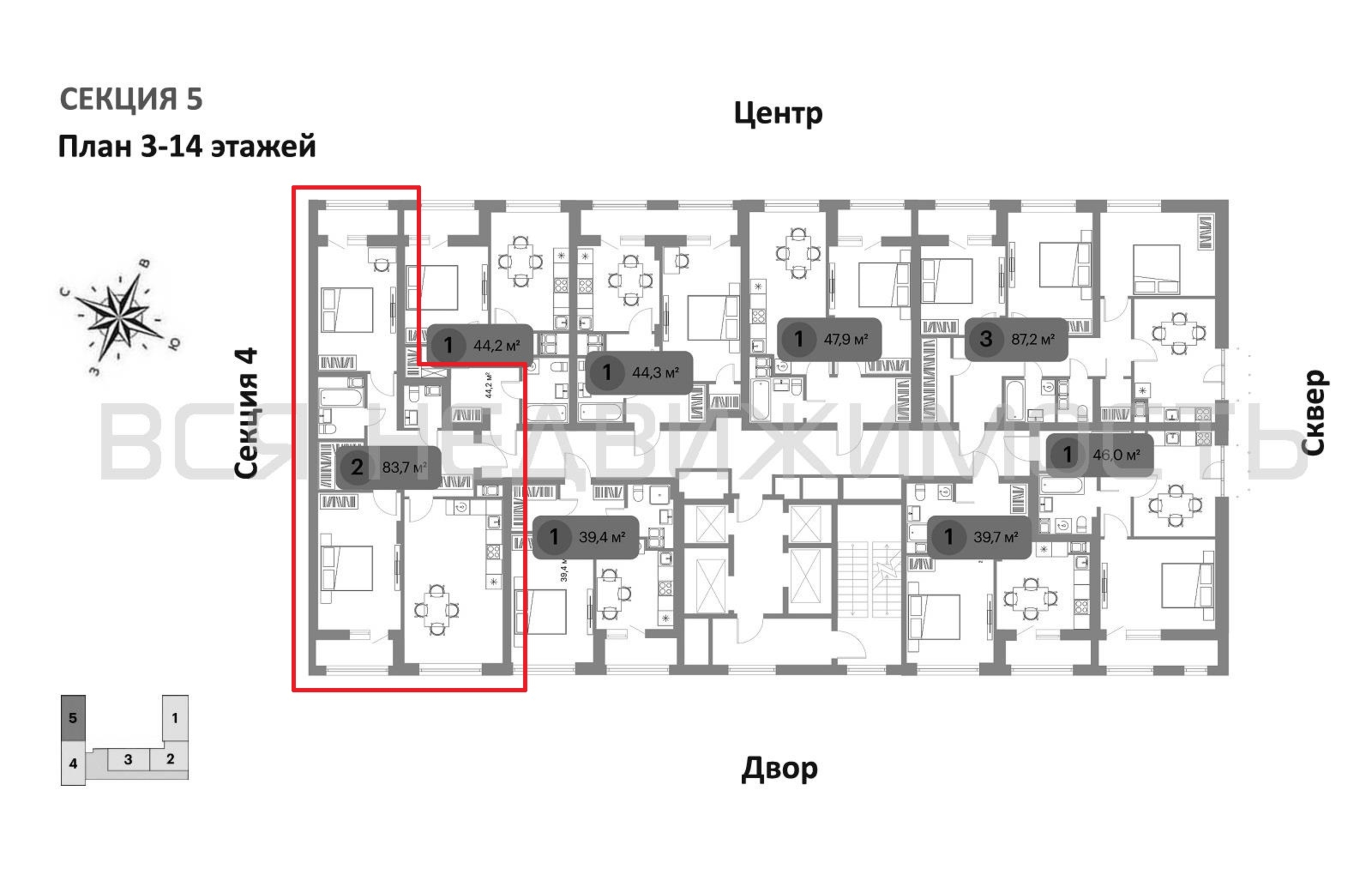 2-комнатная квартира, 84.40 м² 4/23 этаж ID объекта 100139356