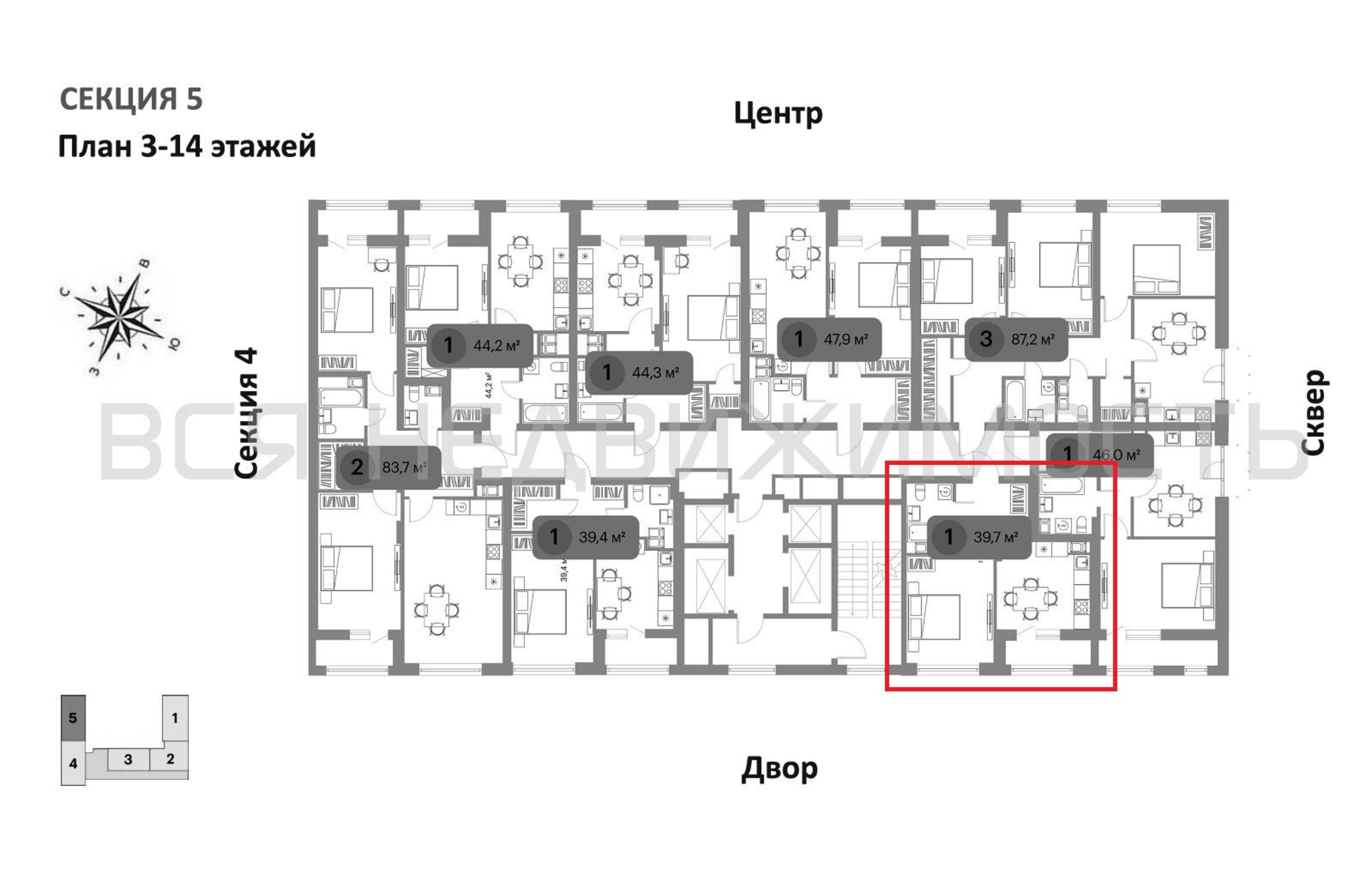 1-комнатная квартира, 39.70 м² 4/23 этаж ID объекта 100139362