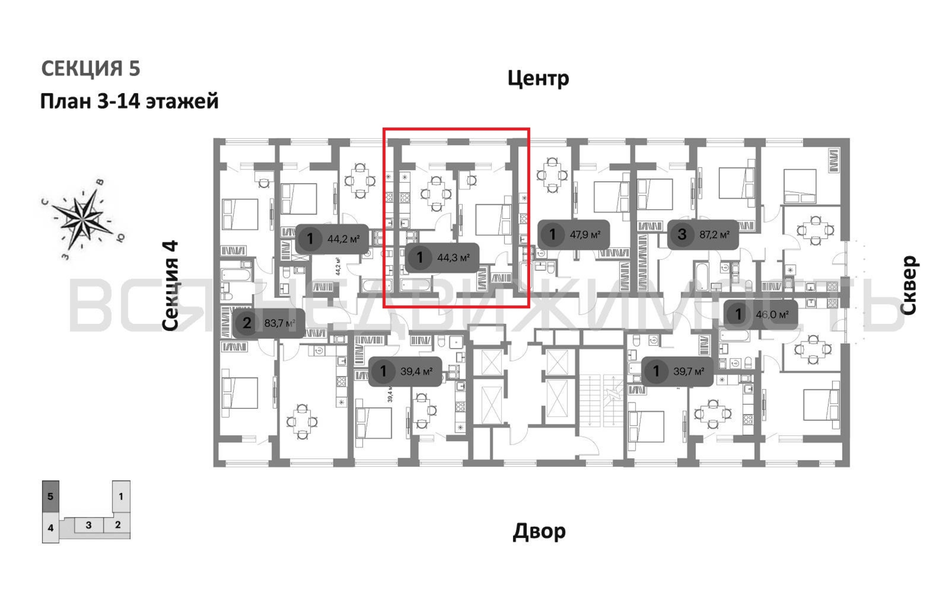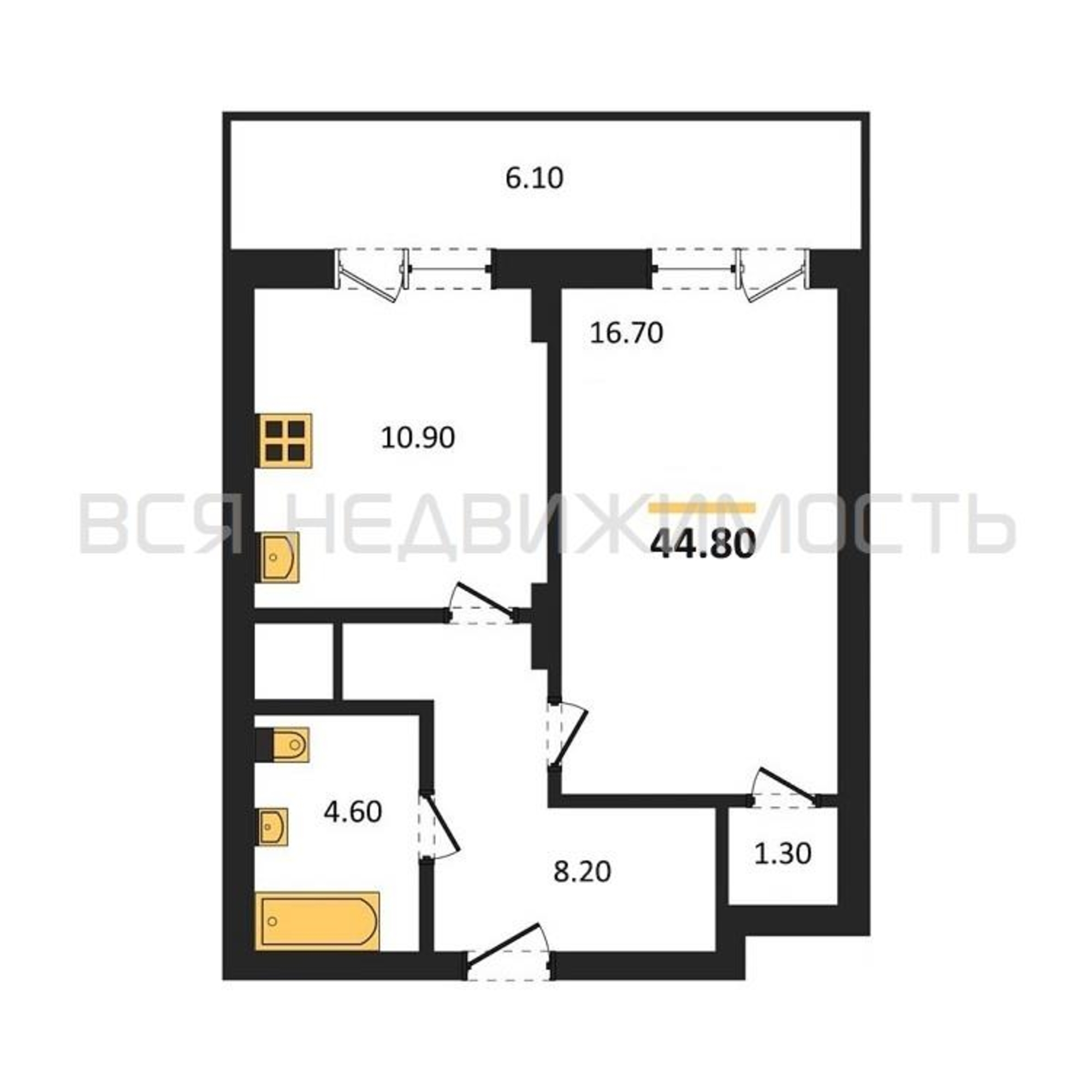 1-комнатная квартира, 44.80 м² 6/23 этаж ID объекта 100139374