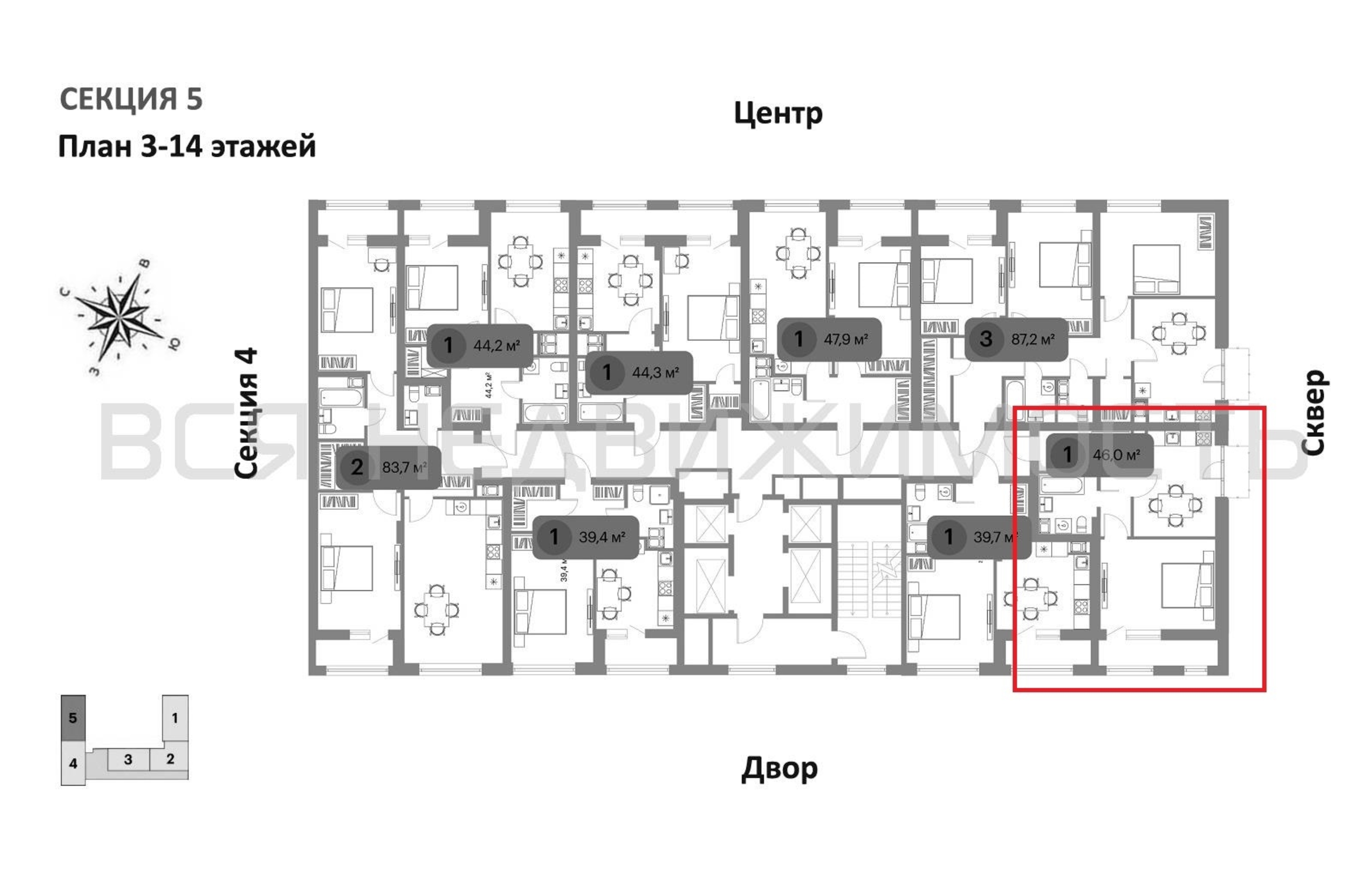 1-комнатная квартира, 46.10 м² 8/23 этаж ID объекта 100139393