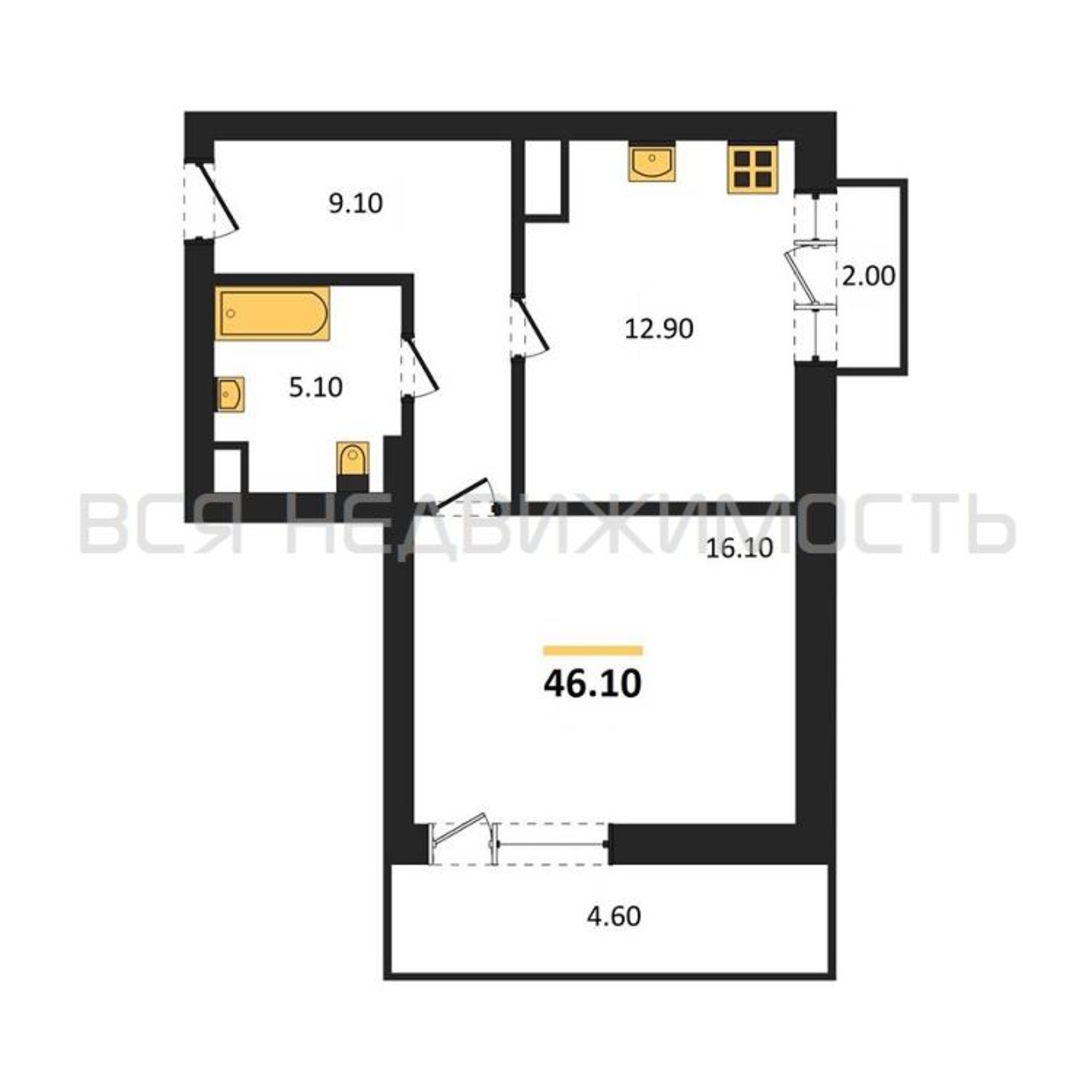 1-комнатная квартира, 46.10 м² 12/23 этаж ID объекта 100139425