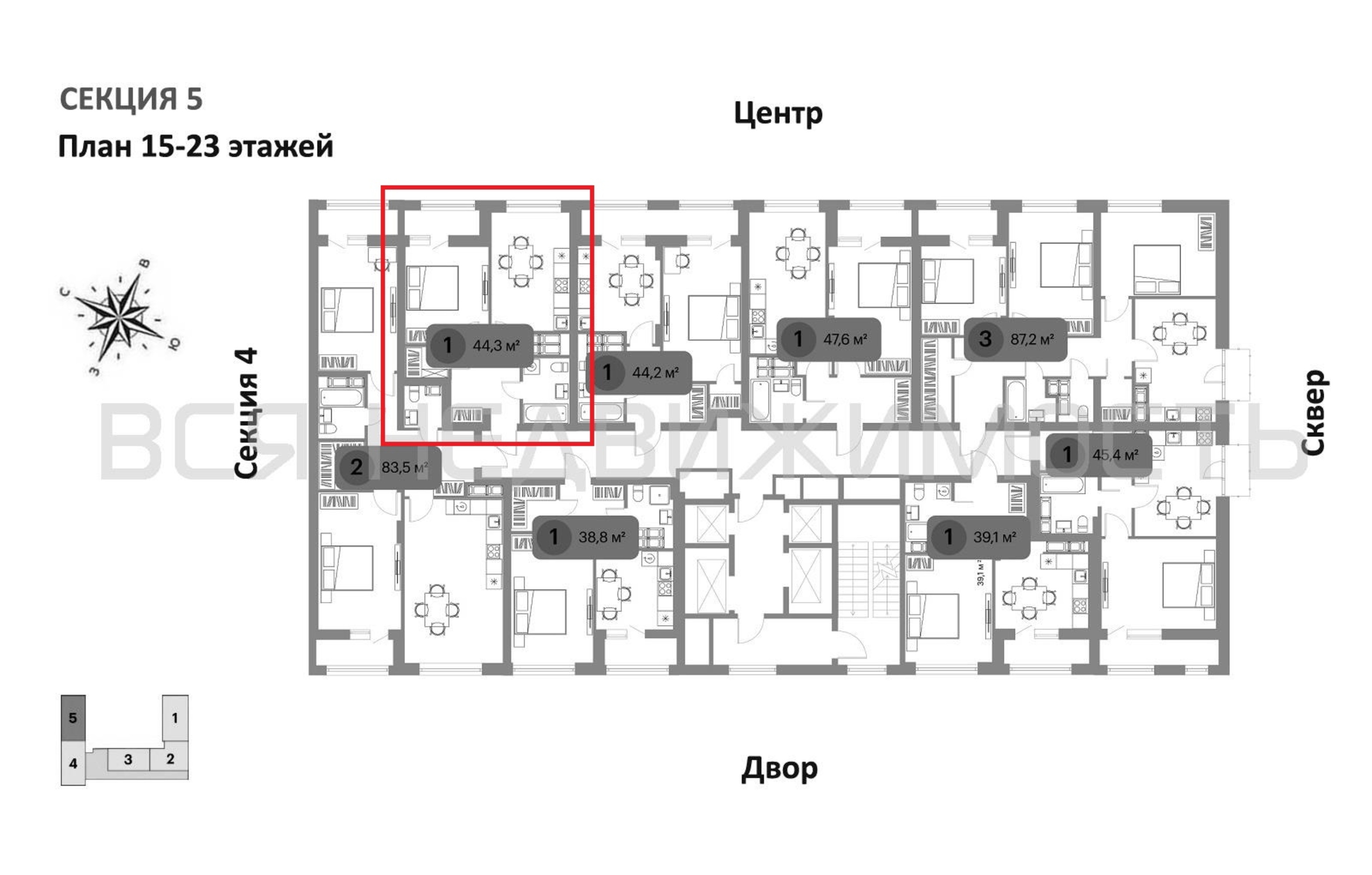 1-комнатная квартира, 44.30 м² 18/23 этаж ID объекта 100139469