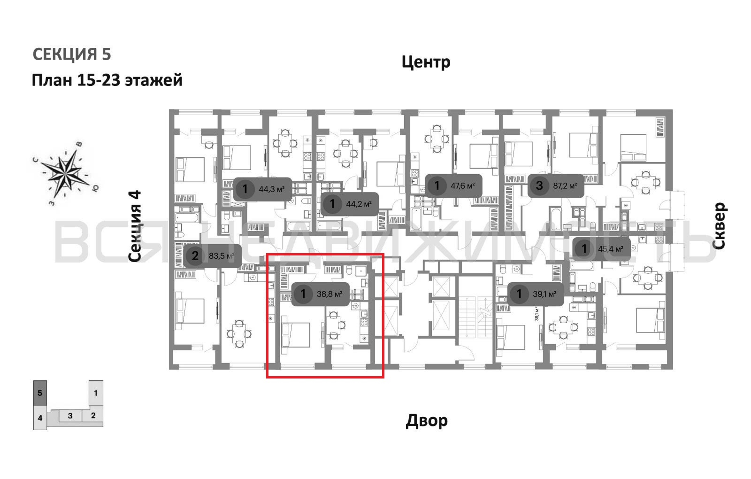 1-комнатная квартира, 38.80 м² 20/23 этаж ID объекта 100139483