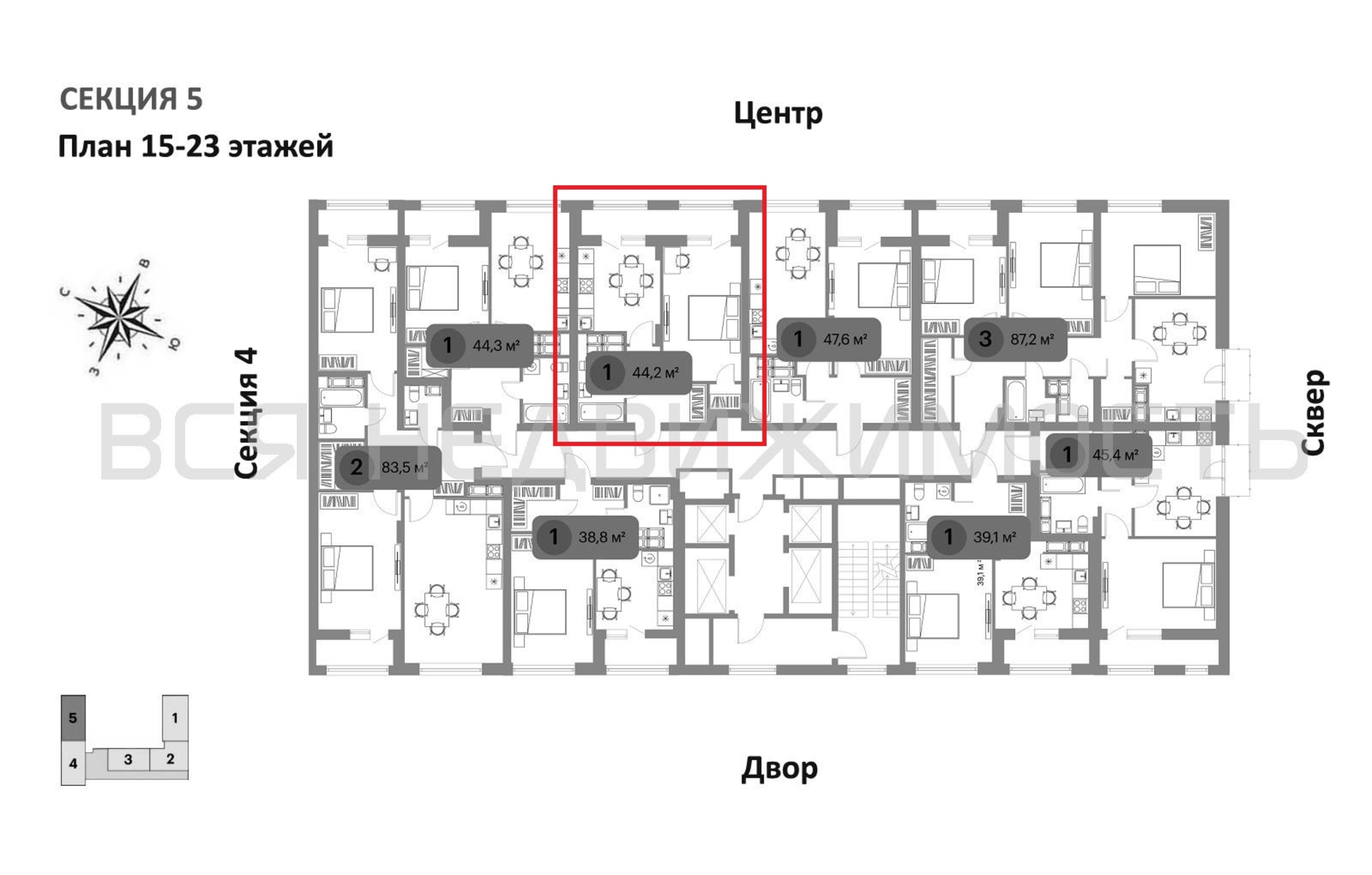 1-комнатная квартира, 44.30 м² 20/23 этаж ID объекта 100139486