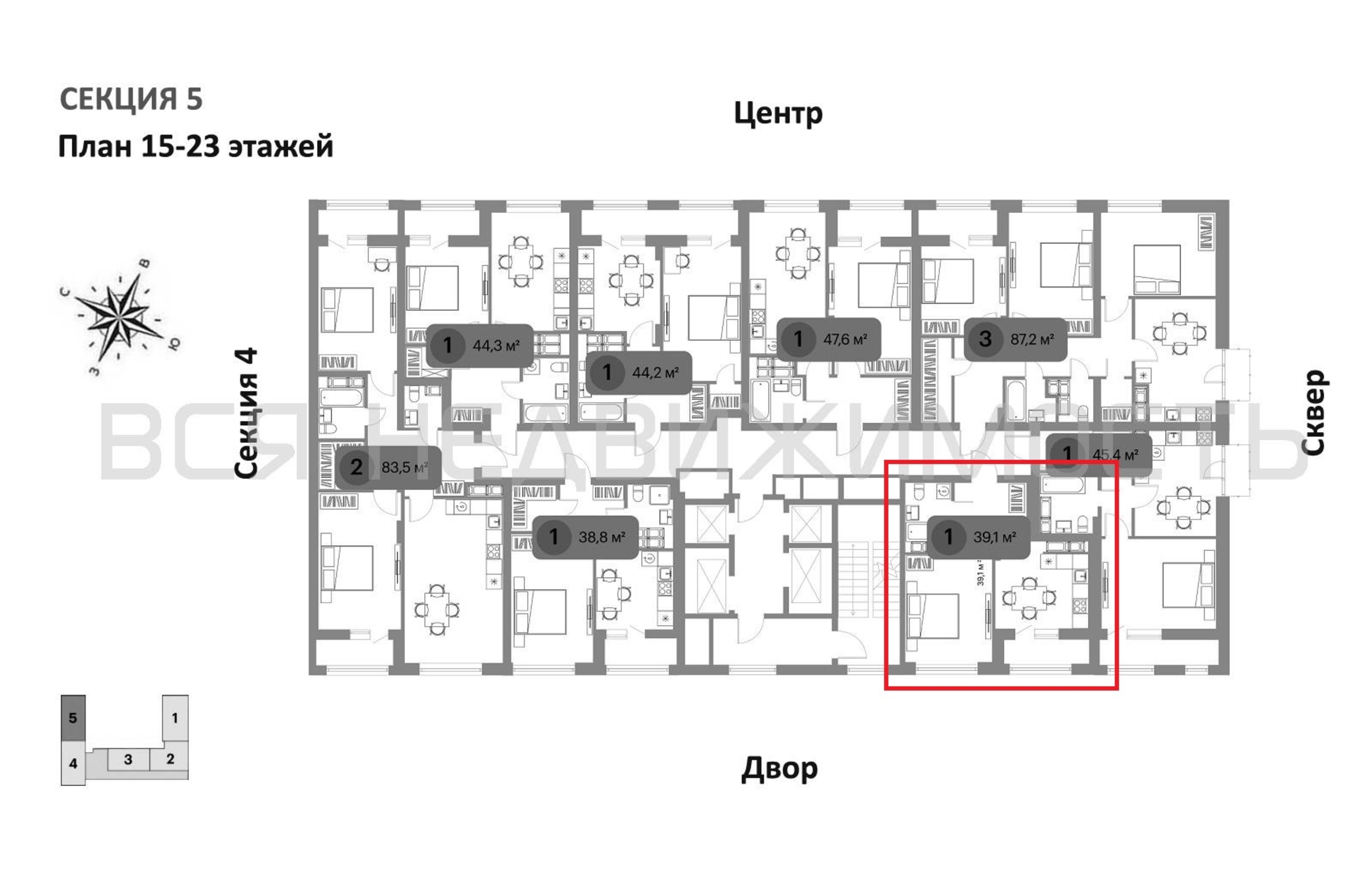 1-комнатная квартира, 39.10 м² 20/23 этаж ID объекта 100139490
