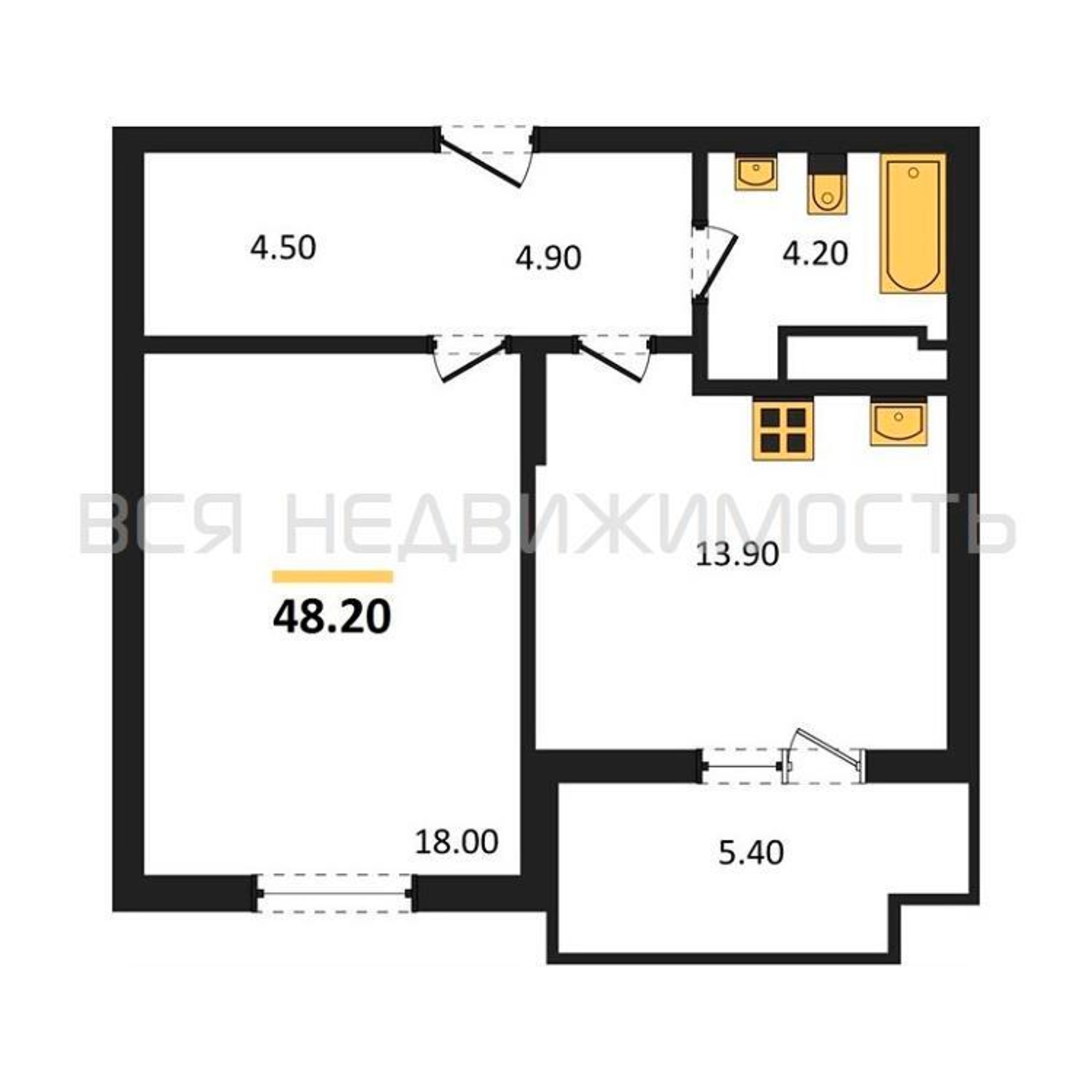 1-комнатная квартира, 48.20 м² 8/8 этаж ID объекта 100139790