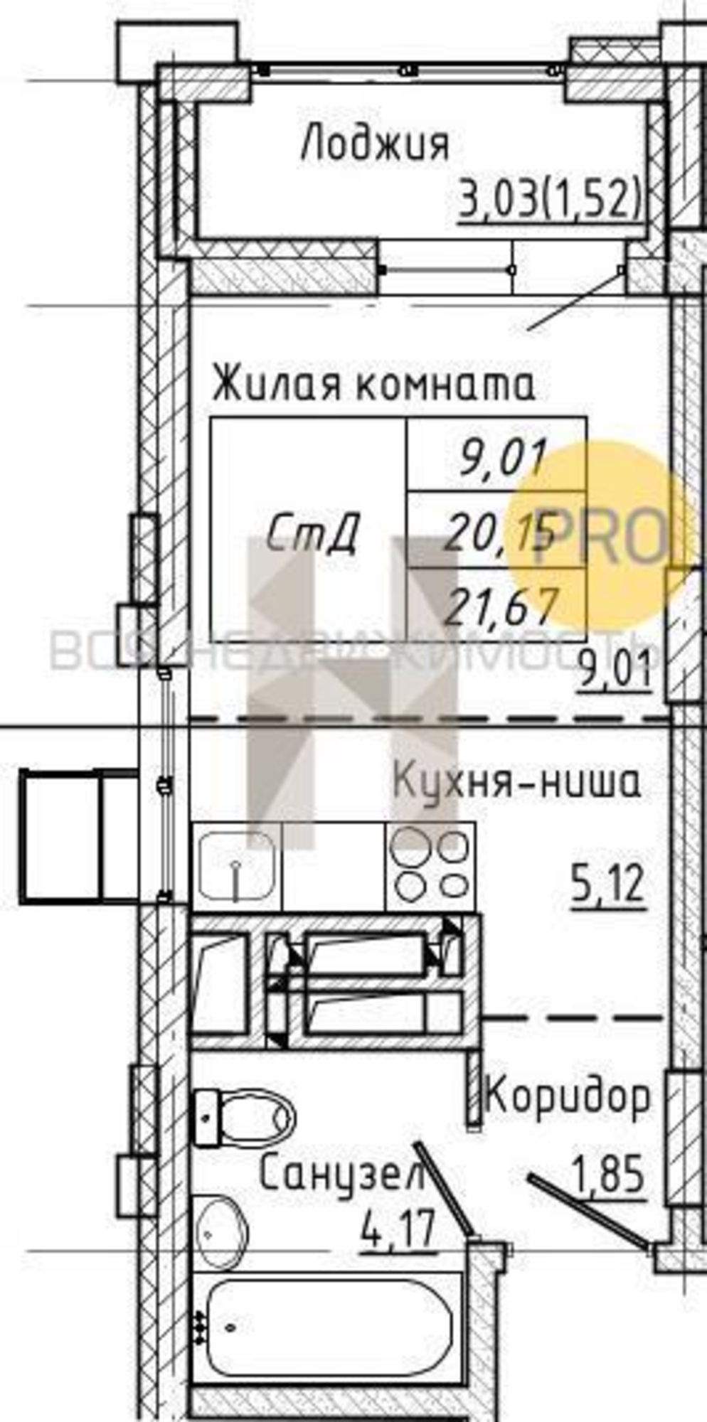 Квартиры-студии, 21.65 м² 20/31 этаж ID объекта 100139994
