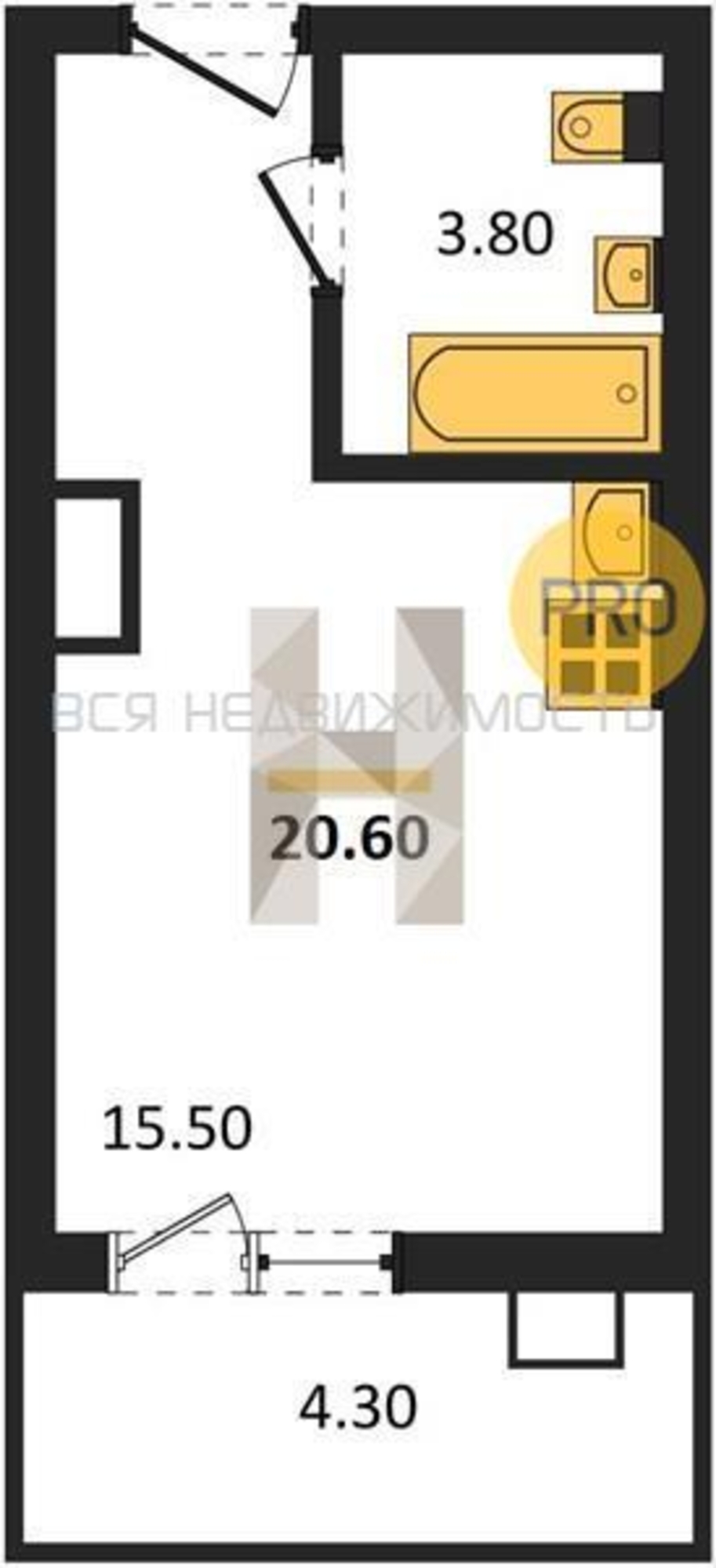 Квартиры-студии, 20.60 м² 7/17 этаж ID объекта 100140998