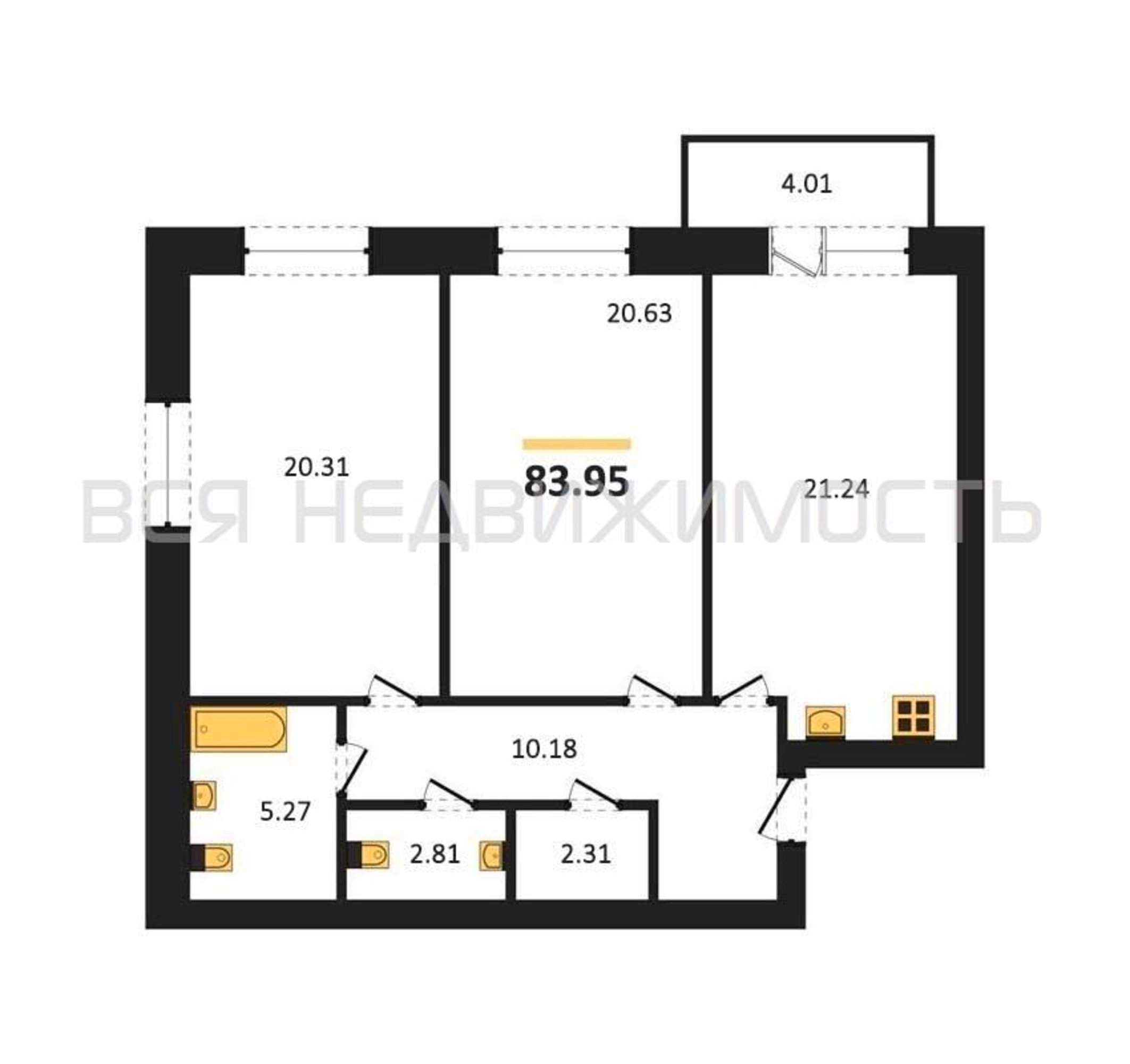 Строительная площадь83.95 м²
