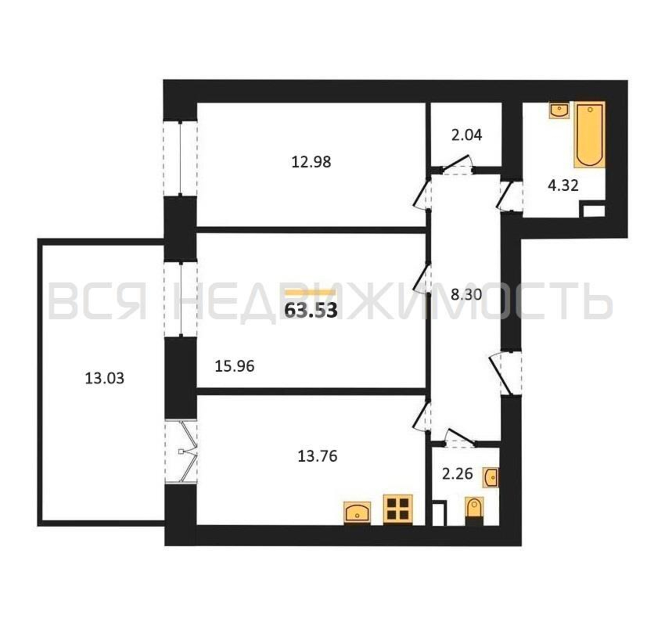 Строительная площадь63.53 м²