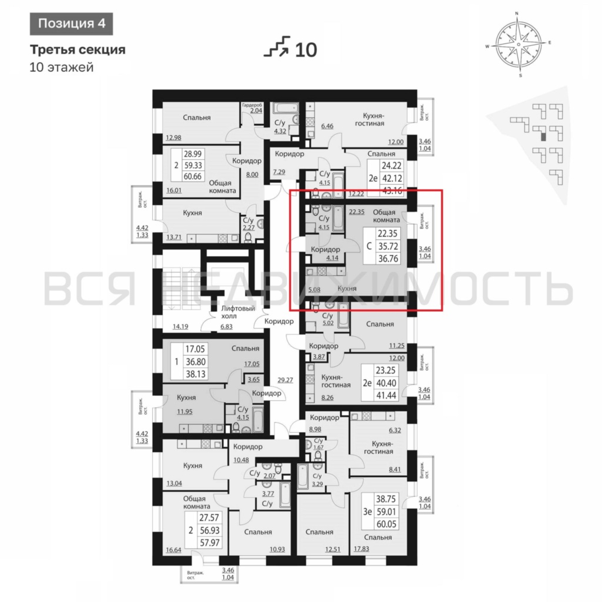 Квартиры-студии, 36.76 м² 10/10 этаж ID объекта 59230