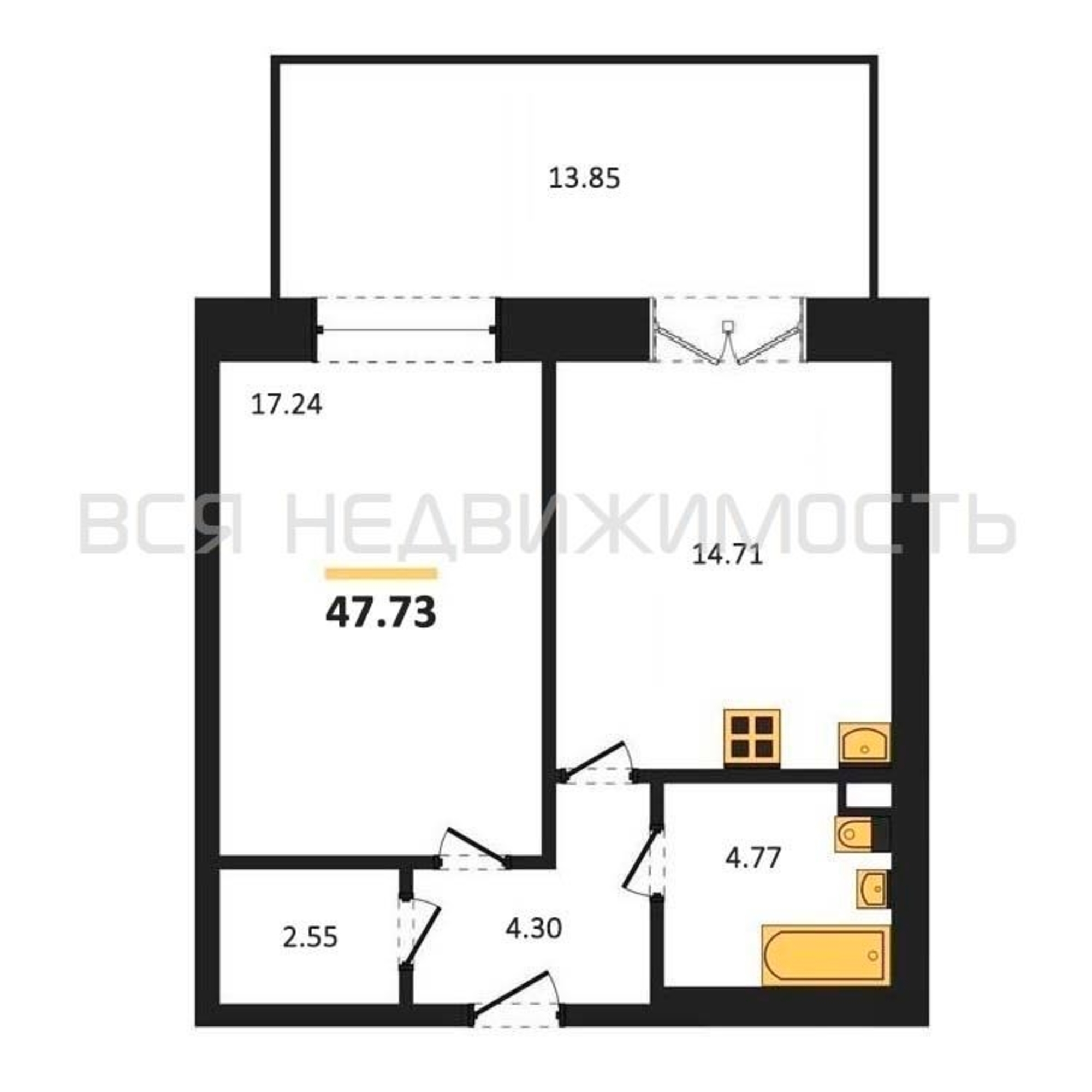 1-комнатная квартира, 47.73 м² 1/10 этаж ID объекта 59237