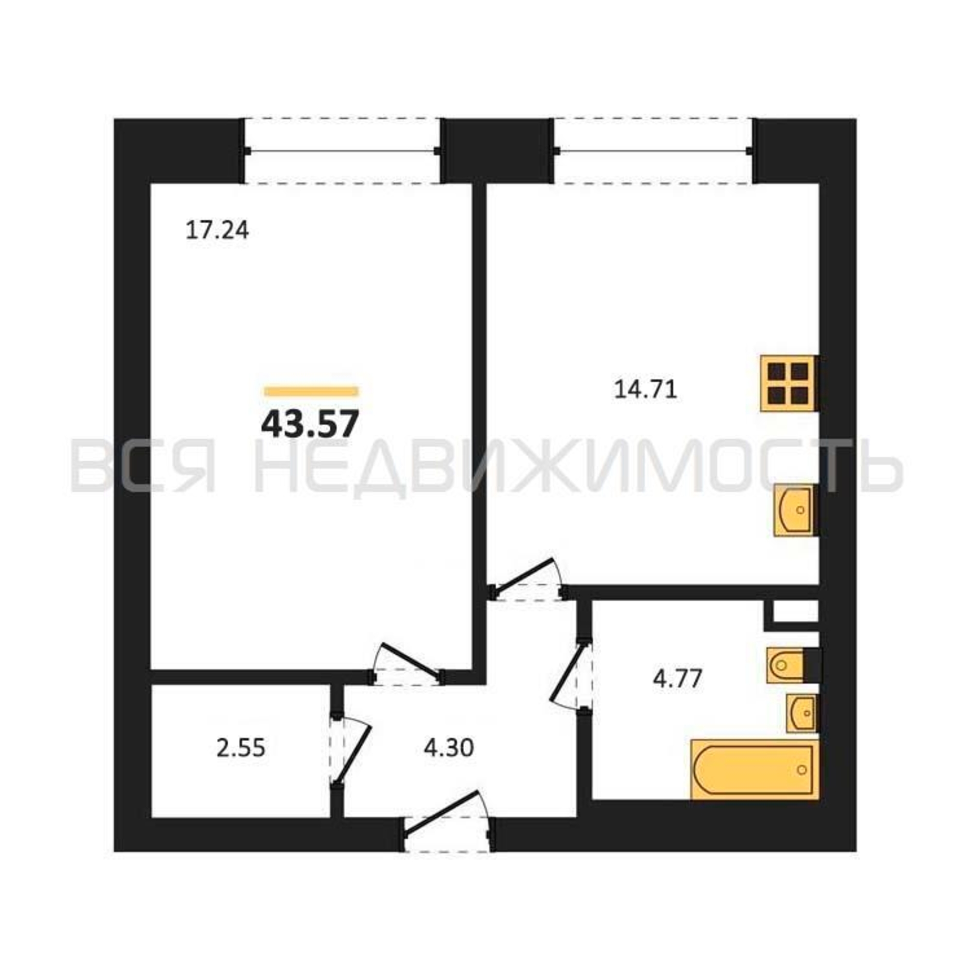 Строительная площадь43.57 м²
