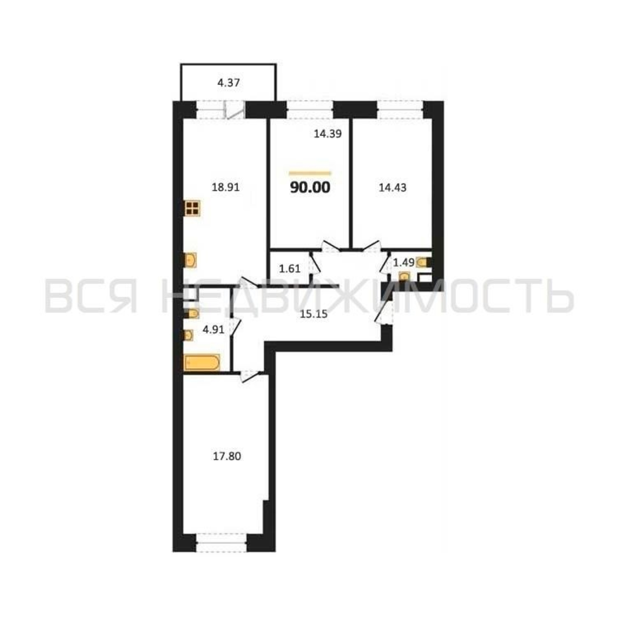 3-комнатная квартира, 90.00 м² 7/8 этаж ID объекта 59322