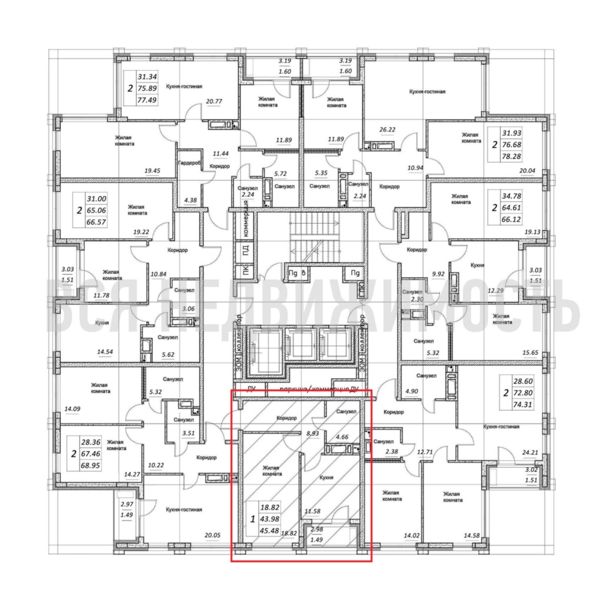1-комнатная квартира, 45.48 м² 9/18 этаж ID объекта 59687