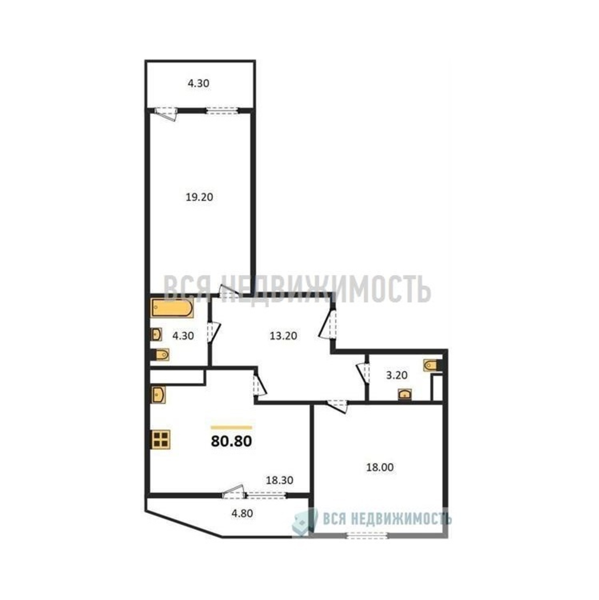 Строительная площадь80.80 м²