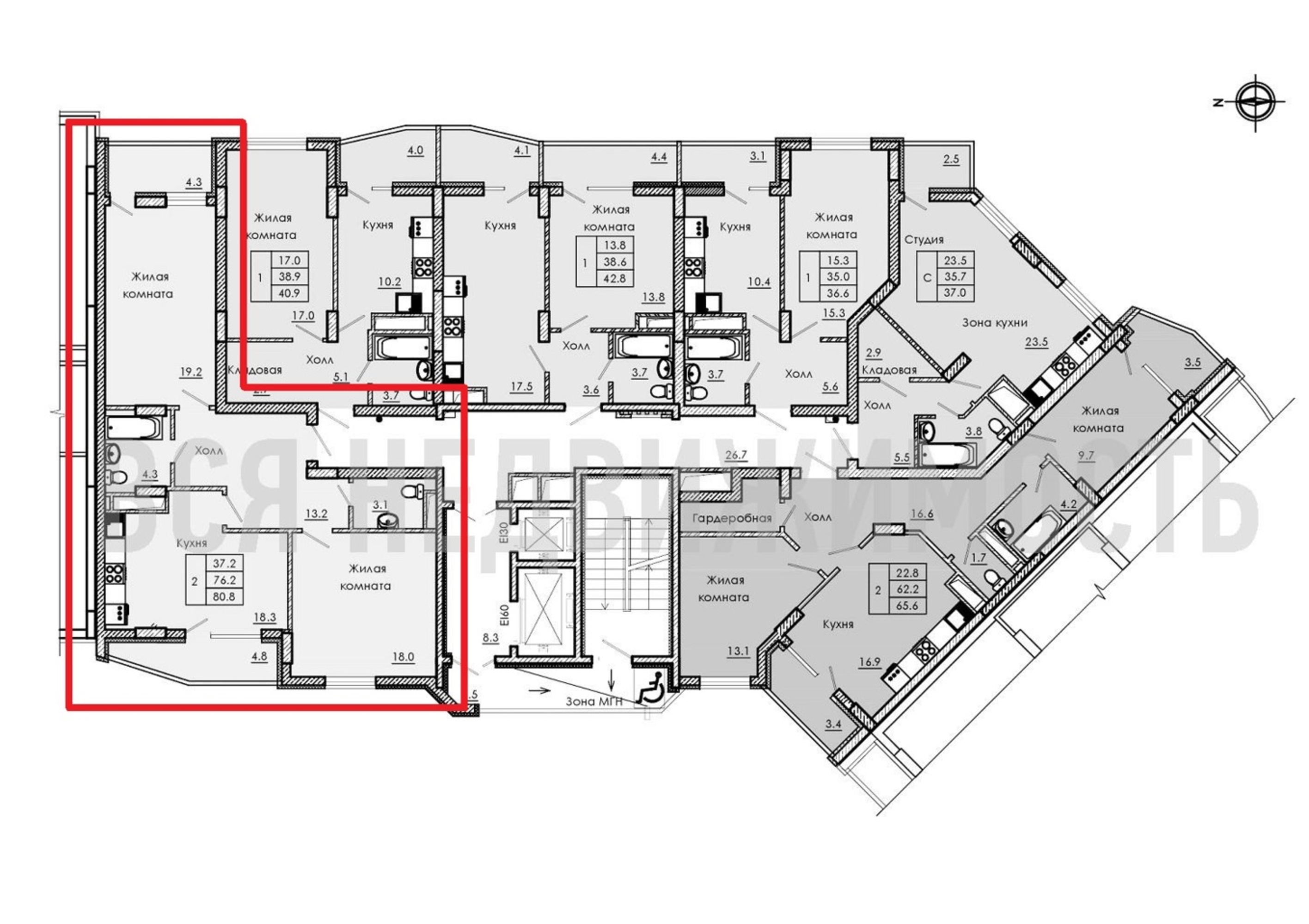 2-комнатная квартира, 80.80 м² 16/18 этаж ID объекта 59937