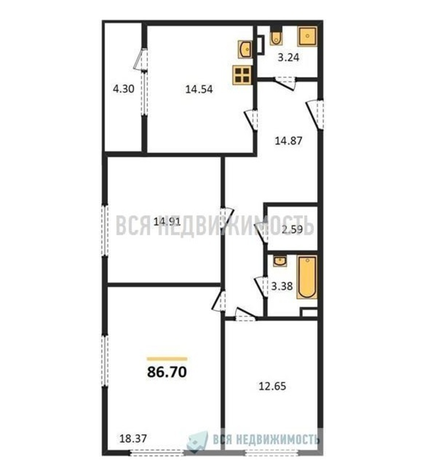 3-комнатная квартира, 86.70 м² 2/4 этаж ID объекта 61436