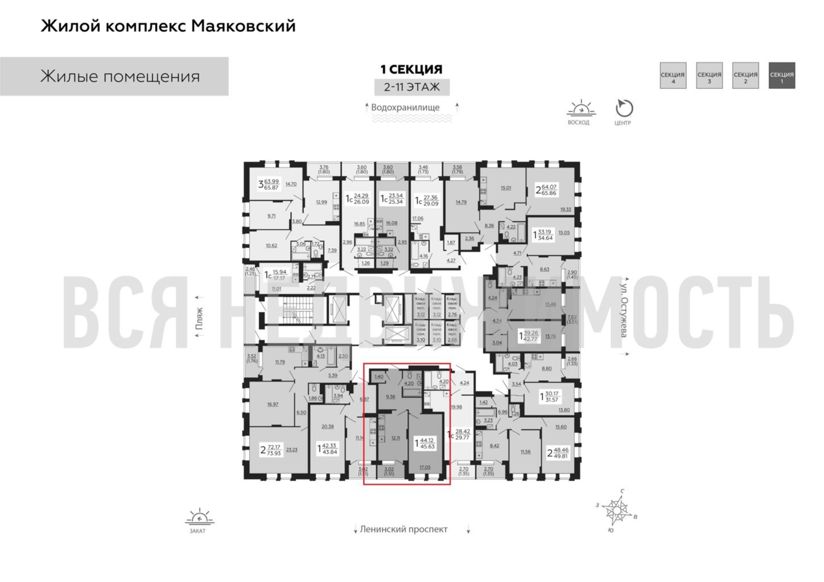 1-комнатная квартира, 45.63 м² 11/21 этаж ID объекта 63658