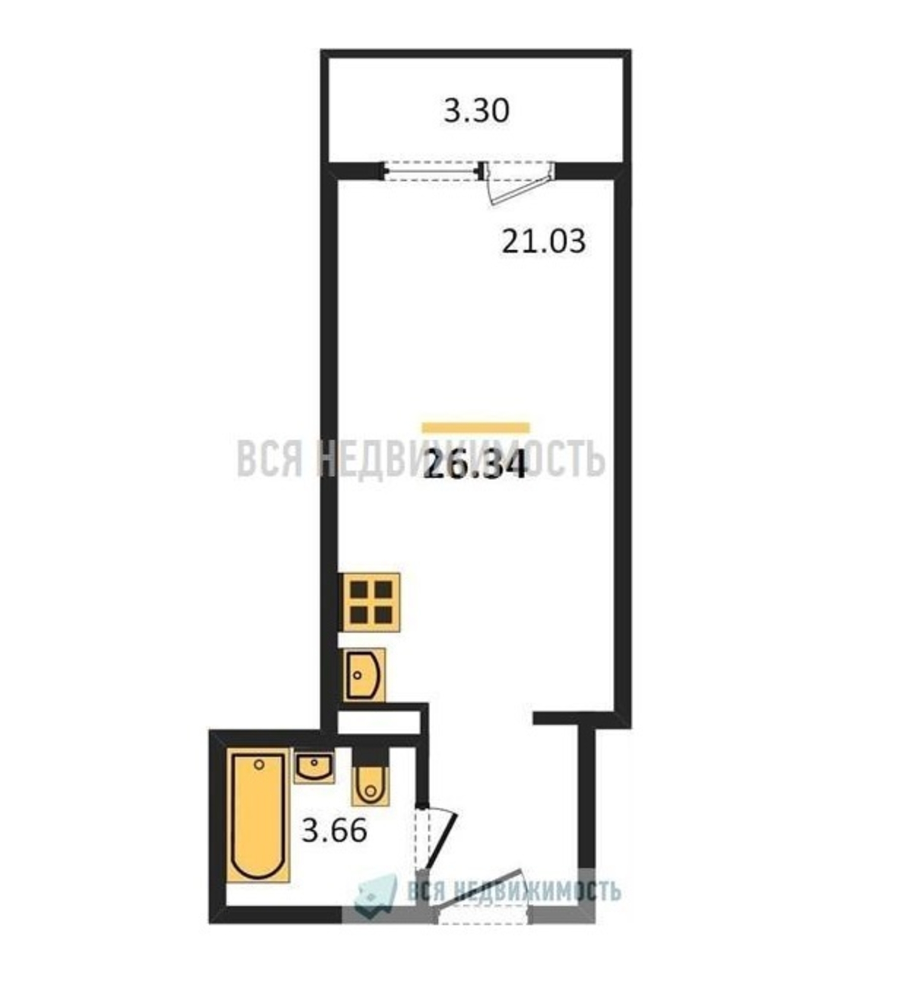 Квартиры-студии, 26.34 м² 2/17 этаж ID объекта 66604