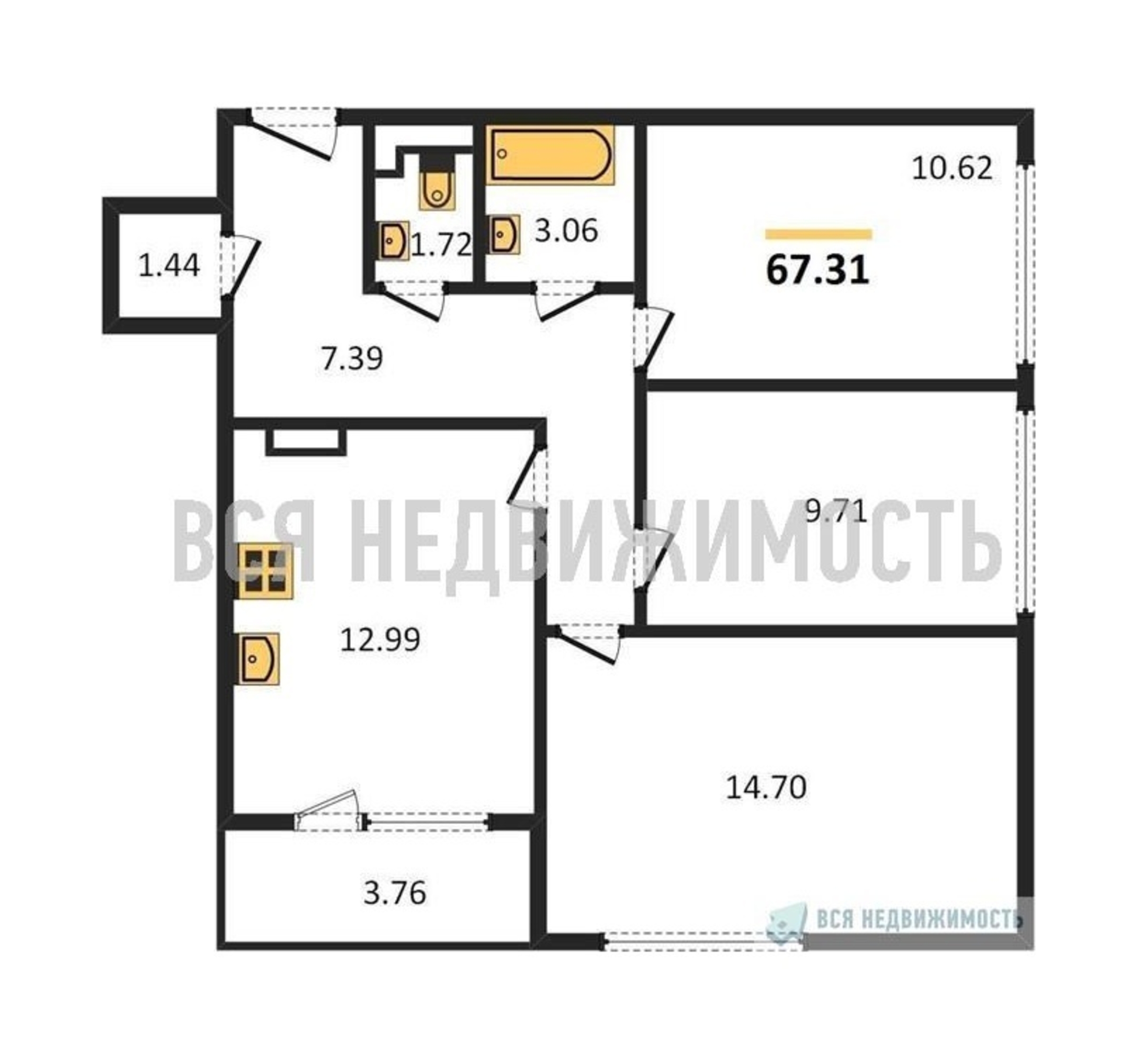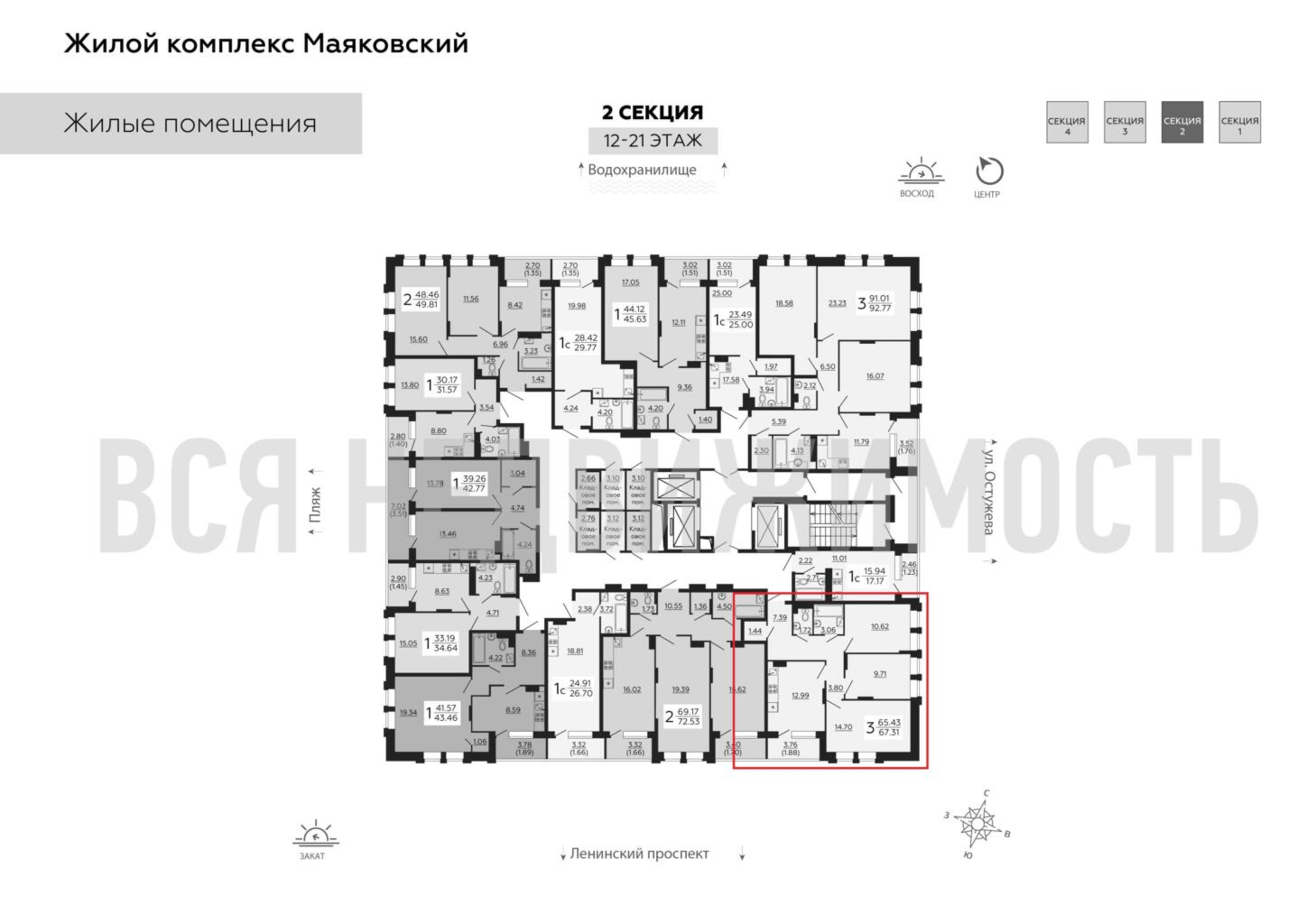 3-комнатная квартира, 67.31 м² 20/21 этаж ID объекта 67615