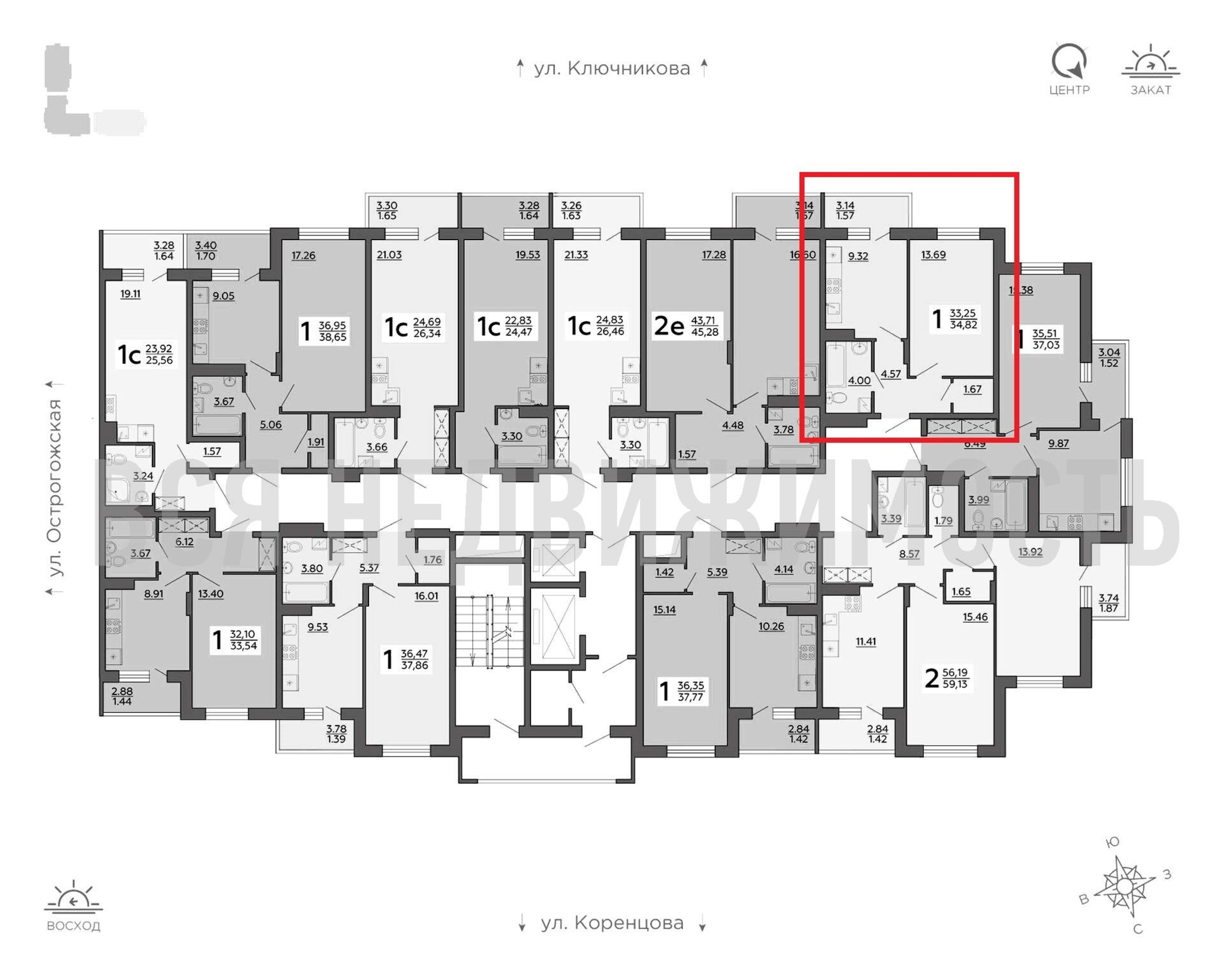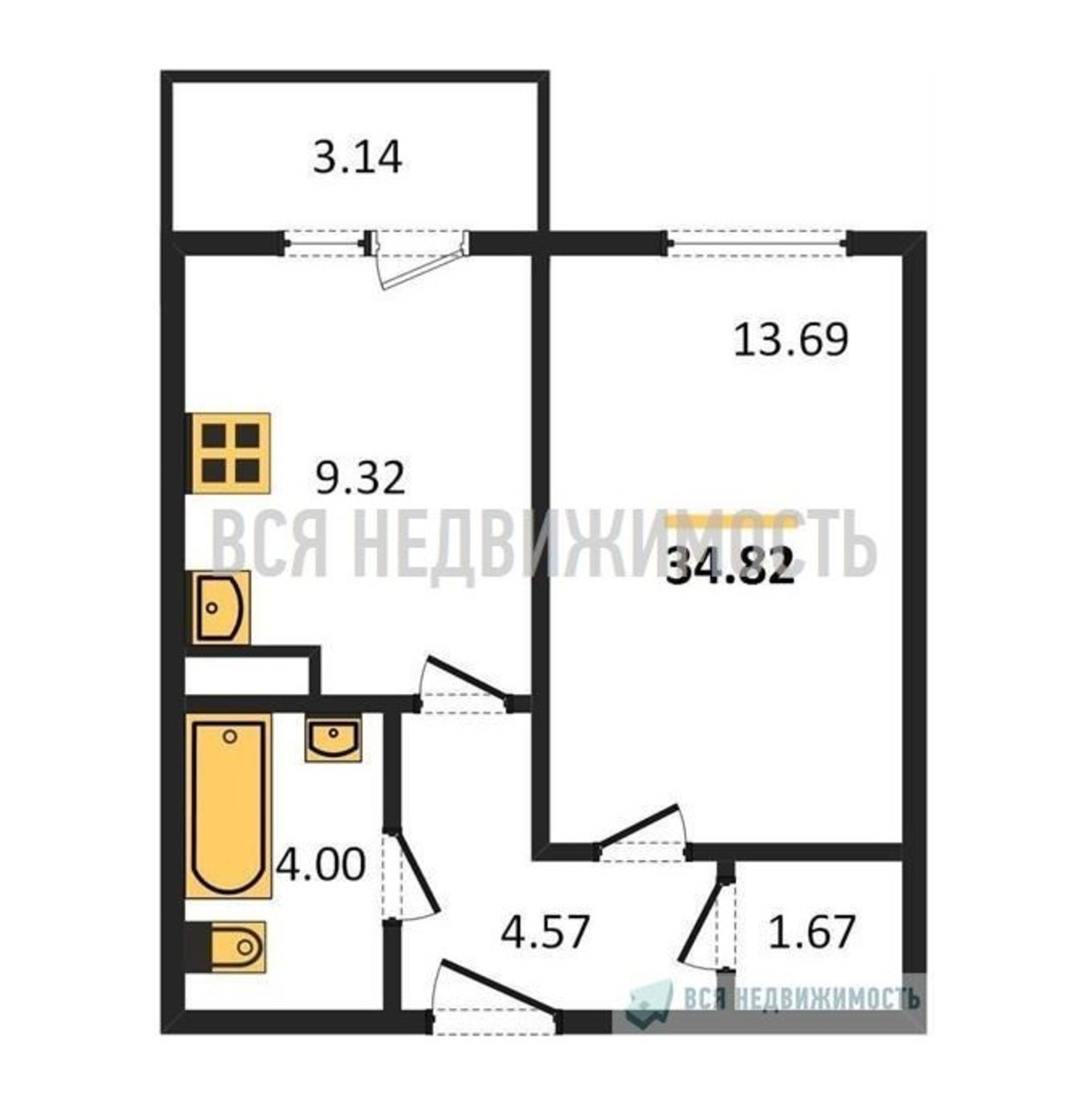 1-комнатная квартира, 34.82 м² 17/17 этаж ID объекта 67687